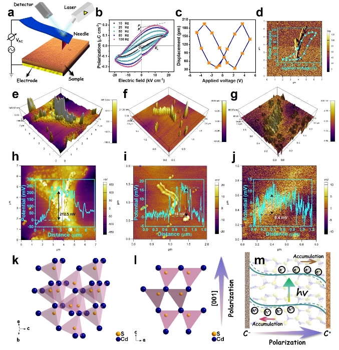图3:CdS及其埃洛石复合材料铁电性能表征与光生载流子迁移示意图