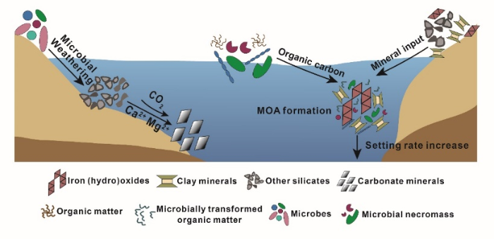 图4. 微生物-矿物相互作用固定CO2和保存有机碳