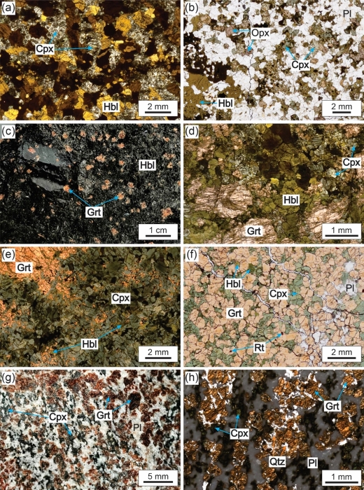 (1)西藏冈底斯弧根角闪石岩、辉长苏长岩和角闪石辉长岩由幔源岩浆分离结晶形成;巴基斯坦Kohistan弧根含石榴子石的岩石是由先前存在的角闪石岩和辉长岩随着地壳加厚发生强烈的变质作用而形成。