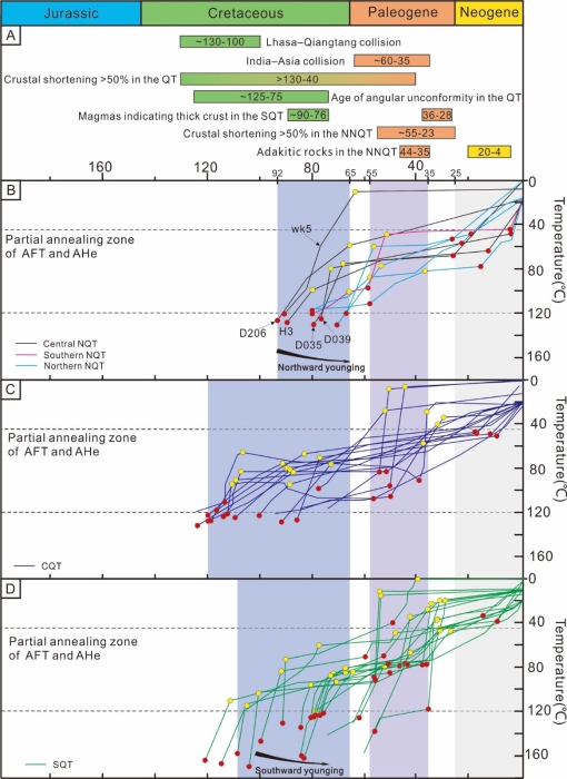 图2 羌塘地体白垩纪以来的地质事件和冷却历史