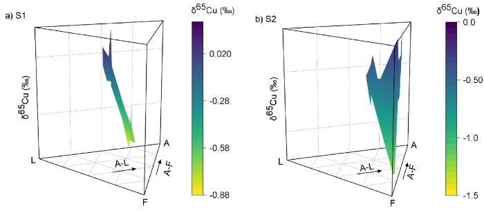 图2 泰国Mun河流域潜育土S1和S2剖面A-L-F与δ65Cu值的相关关系图
