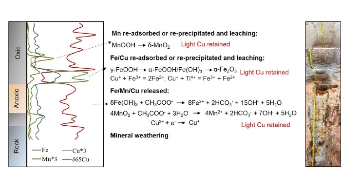 针对以上问题,我校科学研究院博士后郑晓笛在导师韩贵琳教授的指导下,对泰国Mun河流域潜育土风化过程中多期次氧化还原转换过程中Cu同位素的分馏机制进行了探究,取得主要认识如下: