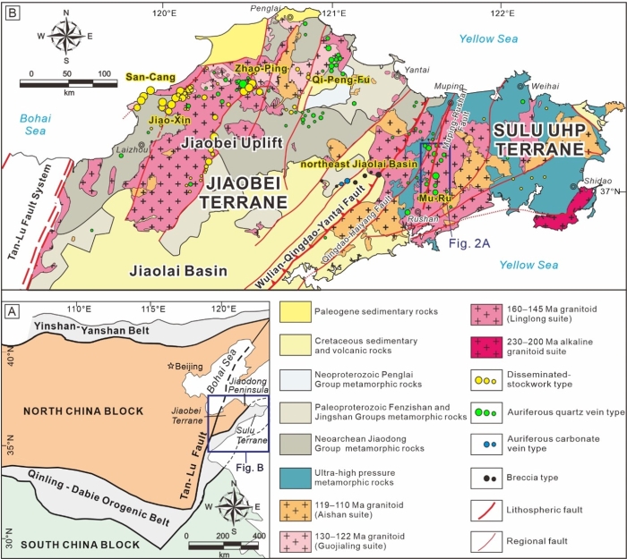 胶东半岛是当今世界仅有的探明金资源储量超过5000吨的三个金矿省之一,古太平洋板块自侏罗纪以来在欧亚大陆下方向西俯冲导致该区巨量金成矿作用。胶东已发现金矿床150余处,以不足全国0.2%的陆地面积孕育中国约1/3的探明金矿资源储量。然而,胶东金矿省金资源分布不均,约85%以上的金资源集中在胶北隆起西部,约5%的金资源分布在苏鲁地体,造成这种金禀赋差异的成因机制仍存在争议。