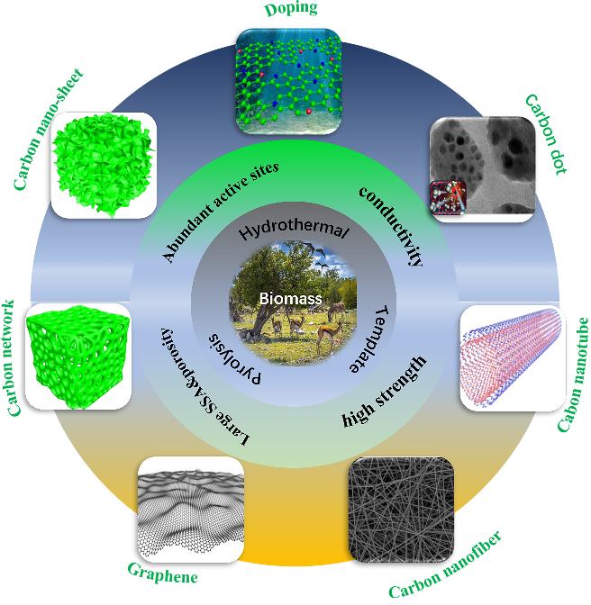 4.生物质基碳材料中不同的表面官能团对其电化学性能的影响尚不清楚。生物质中的杂原子是复杂的。多种杂原子相互作用,给生物基碳材料的电化学性能研究带来了困难。采用单一纯物质作为碳源和掺杂剂控制杂原子含量可以简化研究过程,对分析生物质基碳材料表面官能团的电化学反应机理具有重要意义。如何进一步提高生物质基碳材料的电化学性能将是今后研究的重点。