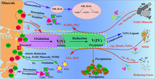 钒(V)是赋存于大陆地壳中的一种过渡元素,因其独特的性能,在现代工业过程中被广泛使用。V作为一种氧化还原敏感金属,在环境中具有三种主要氧化态(+3,+4,+5),水溶液中的V(V)毒性最大最具流动性。与其他有毒金属相比,对V的地球化学和环境行为的认识仍然有限。大多数研究都集中在影响V的地球化学循环的非生物过程(如吸附和化学氧化/还原),而生物介导的迁移和转化改变了V的生物地球化学命运,特定的植物和动物可以从周围环境中吸附V,微生物代谢改变V价态和形态。考虑到这些过程,有必要讨论可持续生物修复,以改善V污染的地质环境。