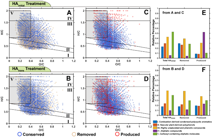 图3. 生物还原前后腐殖酸组分及分子特征的变化(VK图)