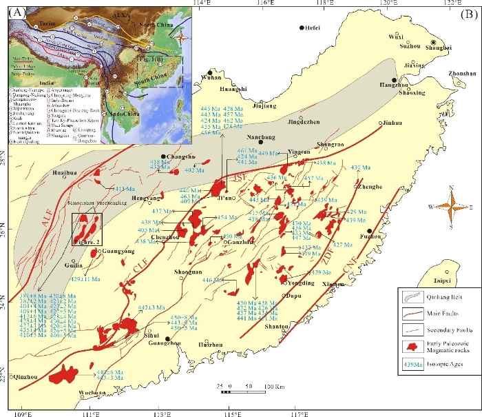 华南地块在新元古代由扬子和华夏地块拼合形成后,显生宙经历了多期具有不同属性的构造-岩浆活动。其中,对于早古生代大规模构造-岩浆-成矿活动性的成因及动力源仍有广泛争议,存在巨大的分歧。沿着华南地块中心钦杭结合带内以及两侧,出露着大量早古生代花岗质岩体,为认识早古生代构造-岩浆活动提供了重要依据,并为探索华南地块深部地幔对流体制对陆内造山运动的控制提供了新的思路和线索。
