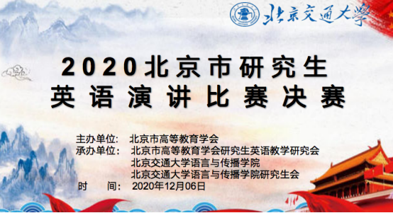 12月6日上午,2020年北京市研究生英语演讲比赛总决赛在北京交通大学成功举办,我院2020级硕士生张诗童荣获一等奖。