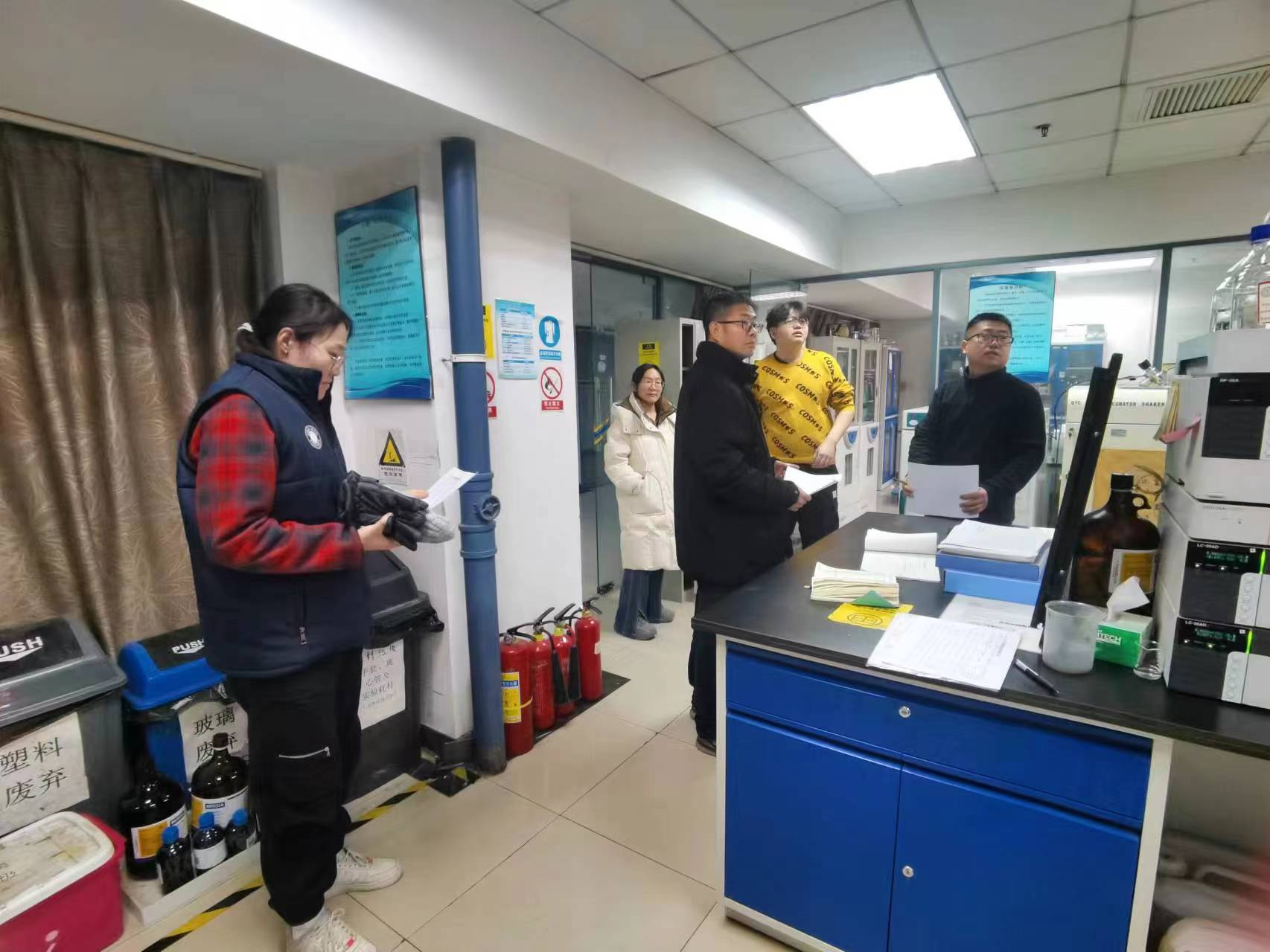 本次检查主要针对假期开放实验室的实验安排、实验人员、实验室日常安全管理等方面进行了检查,并对实验仪器的安全使用、实验过程的相关要求,安全用电等进行了重点强调,确保实验人员明确实验室安全管理要求,消除安全隐患。同时对实验室与办公区域的消防设施进行了排查,确保安全可用。清理学生工位、学生宿舍易燃物品和违规电器的使用,消除火灾隐患。
