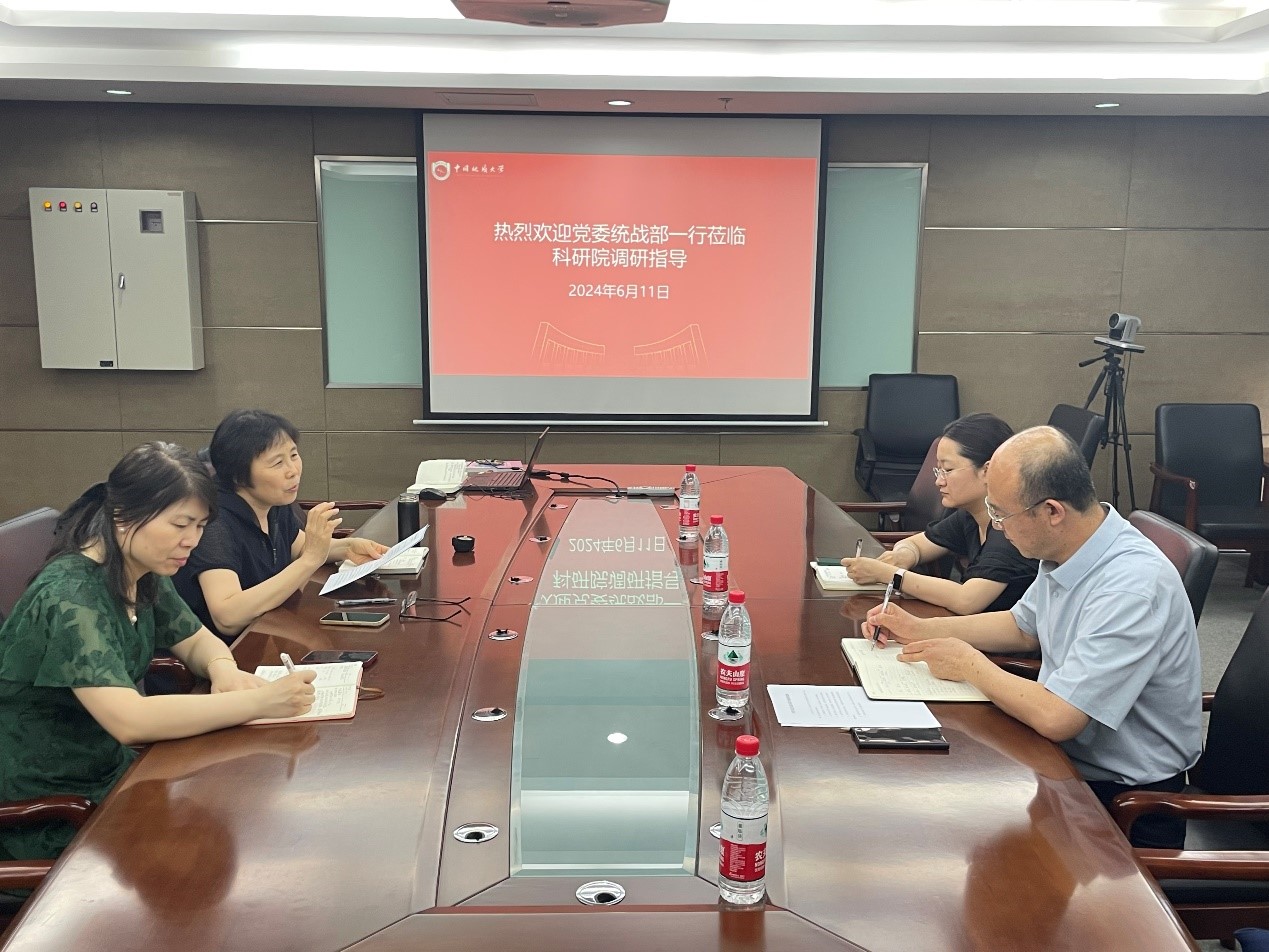 李杰书记对统战部莅临科研院进行调研指导表示了热烈的欢迎,同时十分感谢统战部多年来对学院统战工作的大力支持。随后,李杰书记主要从统战工作机制与队伍建设、党外知识分子基本情况及其思想政治引领情况、党外人士作用发挥、归国留学人员总体情况及其思想引领和岗位建功情况、少数民族师生情况与铸牢中华民族共同体意识教育情况等7个方面汇报了学院近年来的统战工作。她表示,学院党委高度重视统战工作,把统战工作列入学院党委会的重要议事日程,同时,注重党外知识分子在学院日常管理、实验室管理、科学研究、研究生培养等方面的意见建议与实际需求。注重加强对党外人士和归国留学老师的政治引领,为其提供优质服务,充分发挥他们的科研优势,助力学院工作快速发展。