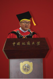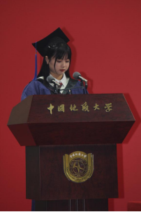 学院毕业生代表鲁瑶对学院的老师们表达了感谢,表示作为科学研究院的毕业生,将肩负起保护地球环境、探究地球奥秘的重任,为中华民族伟大复兴贡献青春力量。