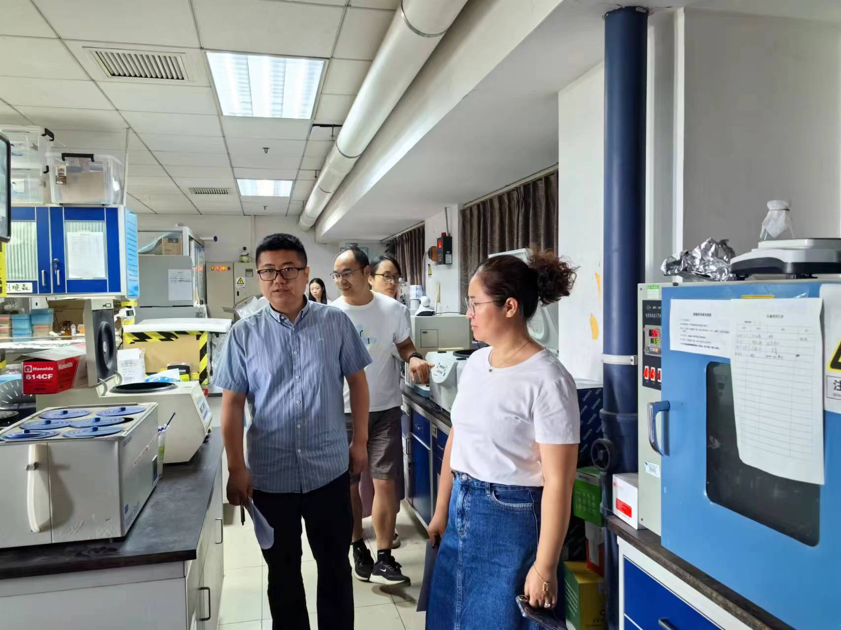 院安全领导小组成员对逸夫楼实验室进行深入检查,主要针对假期开放实验室的实验安排、实验人员、实验室日常安全管理等方面进行了检查,并对实验仪器的安全使用、实验过程的相关要求,安全用电等进行了重点强调,确保实验人员明确实验室安全管理要求,消除安全隐患。确保全院师生度过一个安全、健康的暑假。