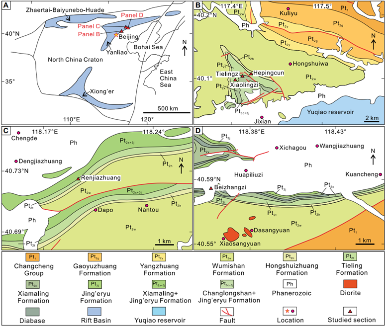 针对上述科学问题,我校科学研究院博士研究生许磊在汤冬杰教授的指导下,与我校史晓颖教授、王新强教授、孙龙飞博士、谢宝增博士,中国科学院地质与地球物理研究所周锡强副研究员,国家地质实验测试中心周利敏副研究员,西北大学黄康俊教授以及英国利兹大学Simon W. Poulton教授开展合作,通过对华北铁岭组富叠层石剖面和贫叠层石剖面进行对比研究(图1),明确了~1.44 Ga增氧事件的本质,并取得了以下创新性认识: