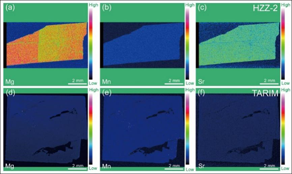 图3 HZZ-2和TARIM方解石的微量元素Mapping结果