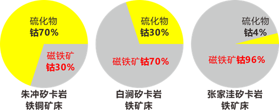 图8 典型矽卡岩型铁铜矿床中钴资源在矿物相中的分配