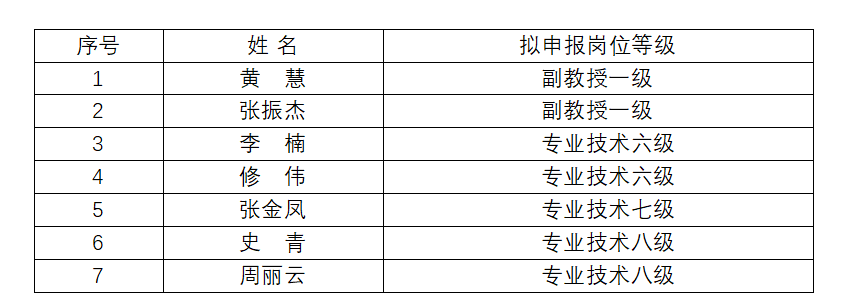 根据学校关于开展2025年度岗位晋升聘任和职员职级晋升工作的通知的要求,将黄慧等7人申请岗位聘任材料进行公示。