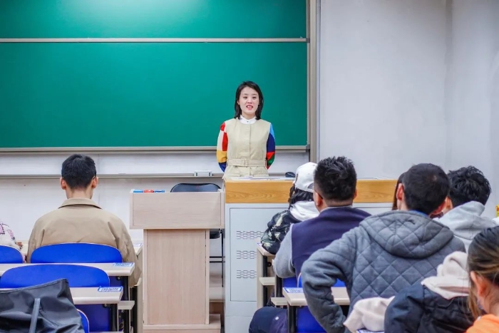 随后,张翃滔老师上台发表讲话。首先对各位新上任的主席团成员以及分团(部)长表示祝贺,然后简单介绍了艺术团的组织架构及其工作安排,回顾了北地艺术团的发展过程。艺术团所有的成长与转变与每个成员都是息息相关的,各位副秘书长、主席团成员以及分团(部)长分工明确、各司其职,北地艺术团员积极配合分团(部)长的工作。其次,张翃滔老师用素养、担当、平衡、奋斗四个关键词对与会人员提出要求。