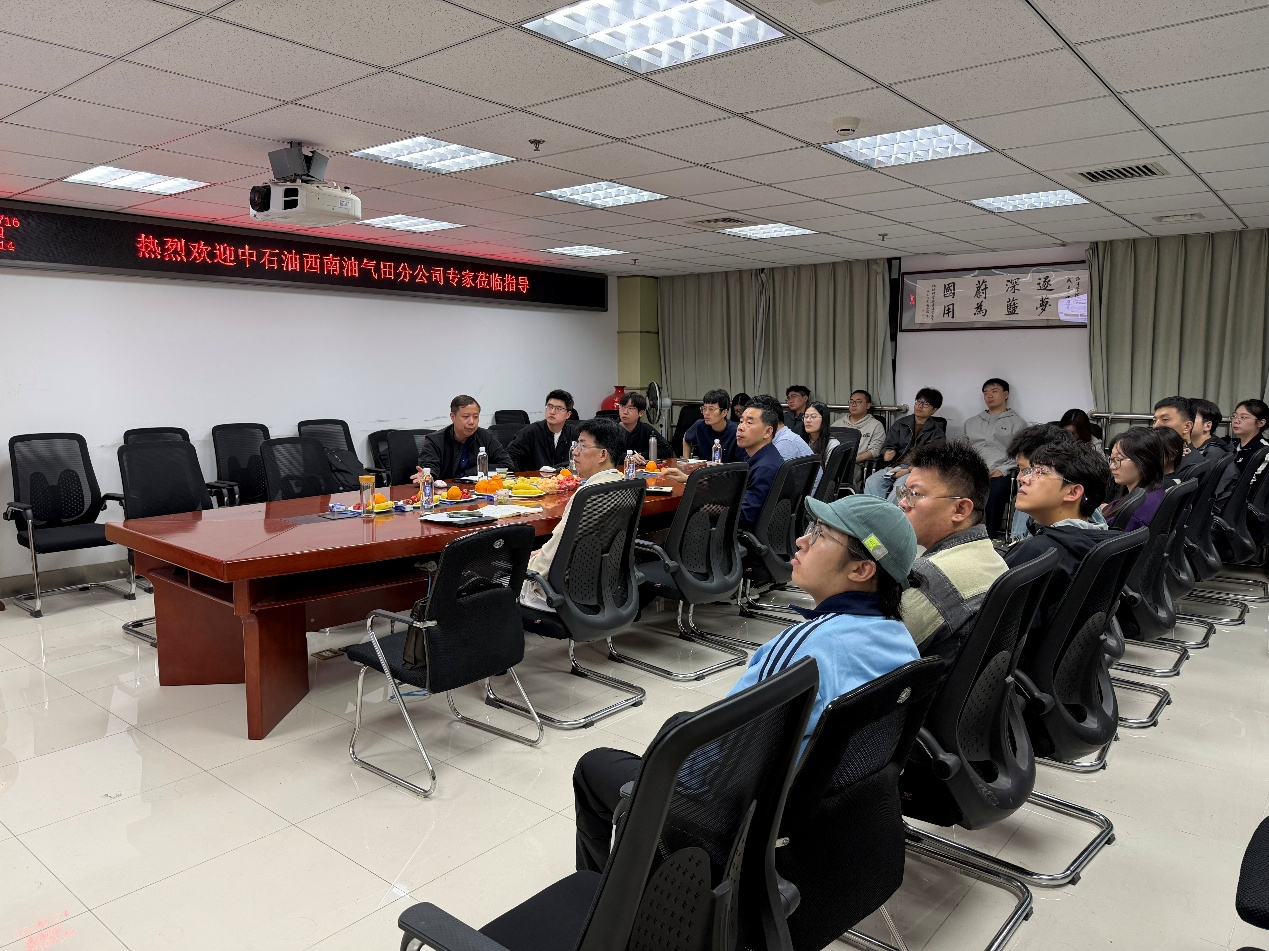 张本健高工从四川盆地地层系统与地质特点、海相克拉通演化过程、茅口组勘探实践和未来海相碳酸盐岩勘探方向四个部分进行讲解。他结合理论研究和勘探实际,全面梳理并总结了四川盆地油气勘探开发历程及成效,详细解析了四川盆地深层勘探中遇到的勘探难题和地质问题;并以茅口组勘探实践为例,介绍了中国海相克拉通盆地沉积构造演化的研究进展;结合分公司油气勘探的最新进展,介绍了未来海相碳酸盐岩、海相非常规气勘探方向和潜力。报告精彩纷呈,师生反响热烈。报告最后,与会师生围绕四川盆地灯影组油气勘探、茅口组灰岩储层机理等问题进行了讨论和交流。