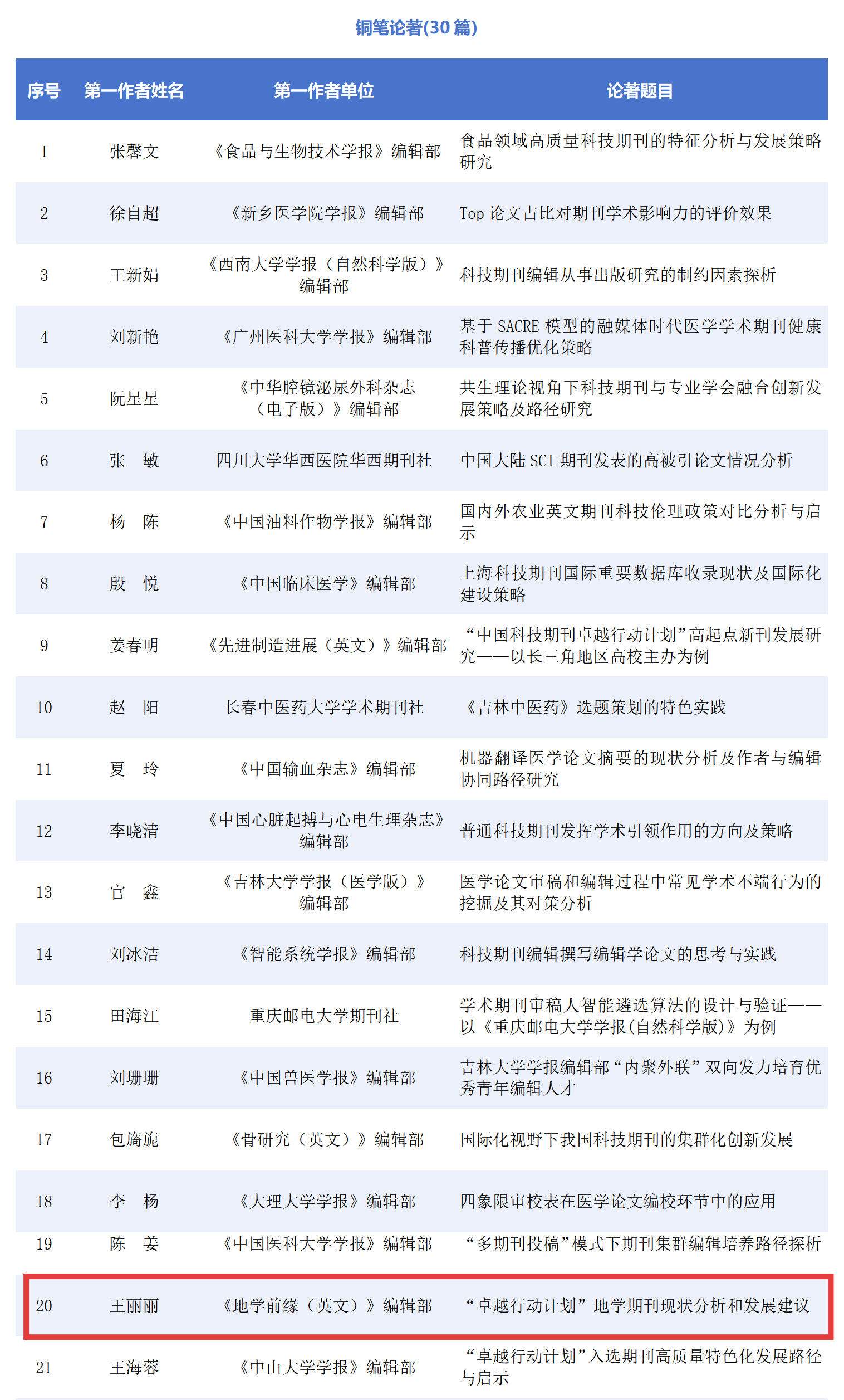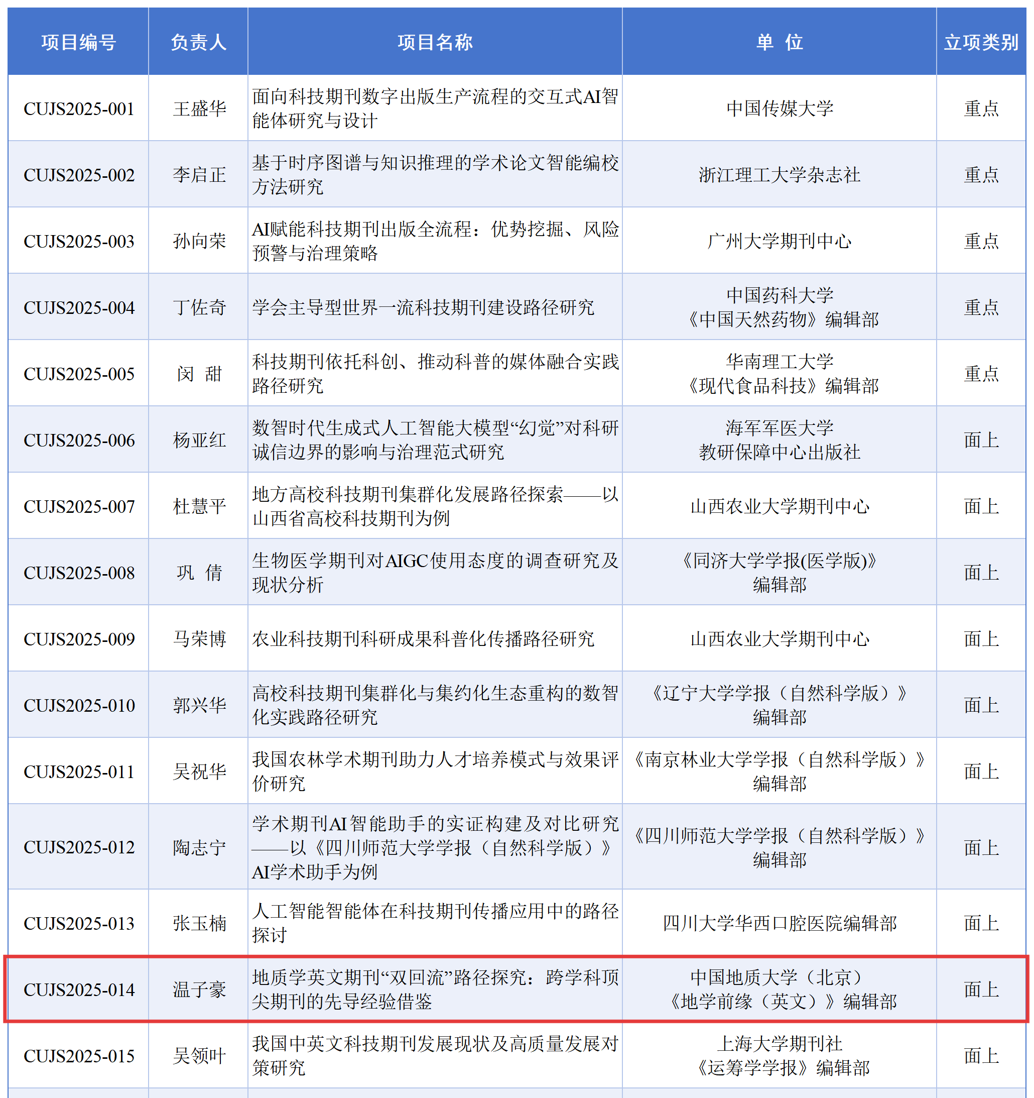 11月6日-9日,中国高校科技期刊研究会第29次年会于陕西省西安市隆重召开。年会以“服务创新策源·培育一流方阵:新时代高校科技期刊的使命”为主题。会议发布多项期刊工作评选结果,地学前缘(英文)(Geoscience Frontiers, 简称GSF)喜获多项荣誉,GSF编辑部获评“中国高校科技期刊建设示范案例库·优秀团队”;我刊编辑部主任王丽丽博士被评为中国高校科技期刊建设示范案例库·优秀编辑,其论著《“卓越行动计划”地学期刊现状分析和发展建议》(发表于《中国科技期刊研究》2024年第9期)荣获“铜笔论著”;编辑部温子豪博士主持的“地质学英文期刊“双回流”路径探究:跨学科顶尖期刊的先导经验借鉴”获批“2025年度中国高校科技期刊研究基金”面上项目。