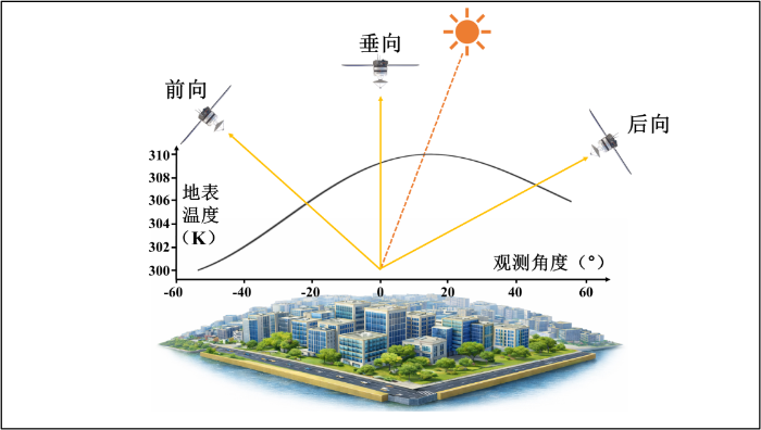 地表温度(Land Surface Temperature,LST)是刻画城市气候特征、评估城市热岛效应和支撑精细化城市管理的重要参数。然而,受卫星观测几何角度的影响,热红外遥感反演的LST普遍存在显著角度效应,尤其在三维结构复杂的城市下垫面中,不同观测方向可导致10K甚至更大的温度偏差,严重制约了多时相、多传感器LST数据的可比性与应用可靠性。目前,城市LST角度效应研究主要依赖多角度观测统计或经验模型,难以处理卫星瞬时时刻非同步多角度观测,对气象变化的响应能力有限,其物理一致性和推广应用能力仍存在明显不足。