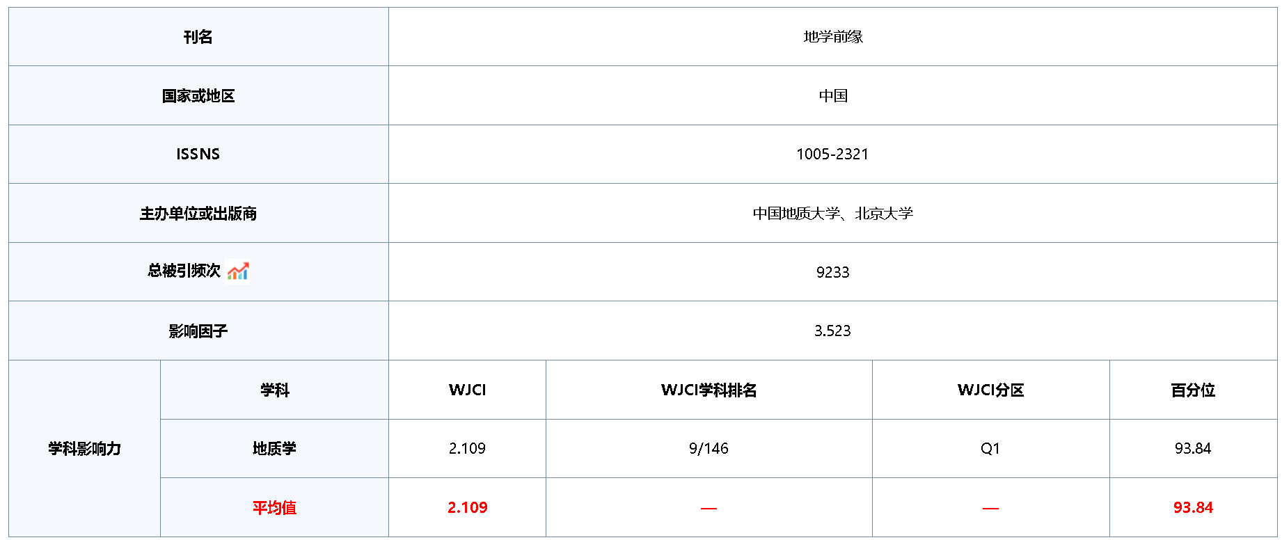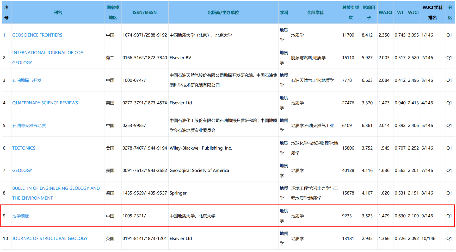 近日,中国科协《科技期刊世界影响力指数(WJCI)报告》2025版正式发布,报告显示:《地学前缘》科技期刊世界影响力指数(WJCI)为2.109,在全球146种“地质学”期刊中排名第9位,位居Q1区,期刊影响力再创新高。《地学前缘》编辑部在此向关心、支持期刊的编委、审稿专家、作者及读者致以崇高敬意和由衷的感谢!