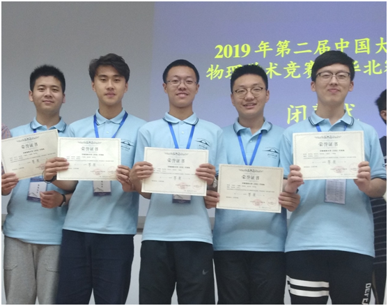 5月18日至19日,第二届华北赛区中国大学生物理学术竞赛在北京师范大学举行,我校代表队以总分第5名的好成绩获得一等奖,并取得国赛资格。代表队由2位指导教师和5名学生组成,他们分别是吴秀文教授、董爱国高级实验师,以及马毓廷、朱育杰、孙珩伦、卢瑞翔、杨炎昆同学。