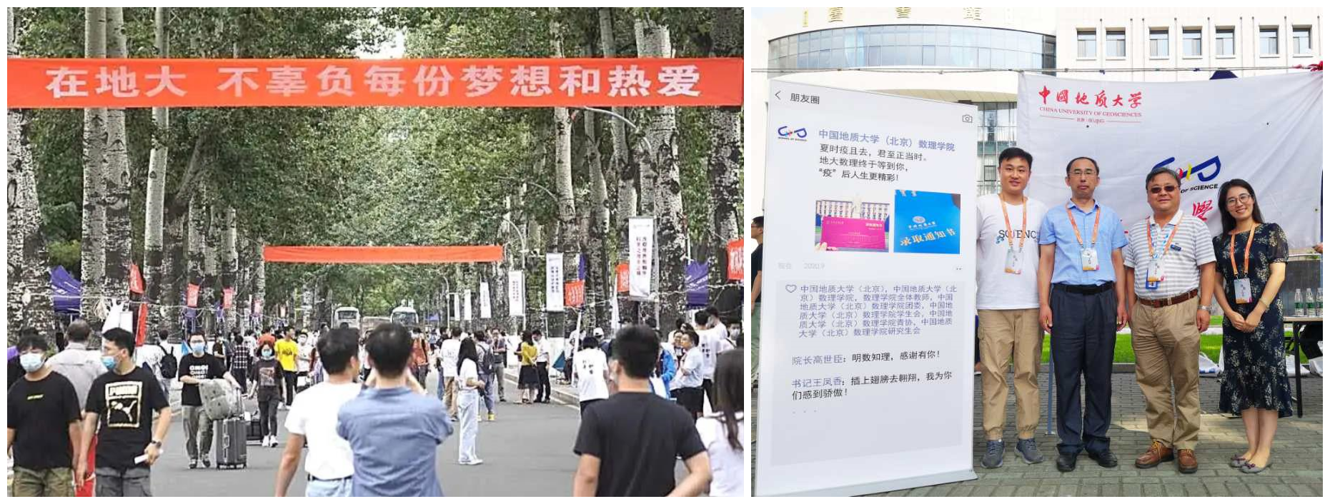 “暑退九霄净,秋澄万景清”,9月12-13日,中国地质大学数理学院终于迎来了180名2020级新生,让秋意渐浓的校园焕然一新。校东门数理学院院系牌标清晰醒目,主马路上“欢迎你,新北地人”等标语温暖而热烈。新生同学们满怀热情与憧憬,抱着对新生活和新知识的向往,正式开启地大数理时光。