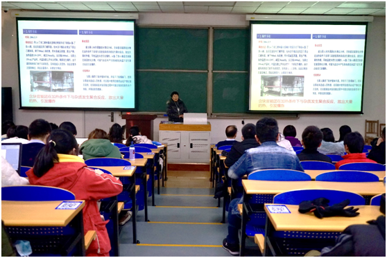 在张老师结束讲座后,朱久娟老师从危化品使用安全方面给大家做了一场生动的报告。她从一段描述海因里希法则的动画开始,告诫大家,每一起重大的伤亡事故背后,一定有29起轻微事故和300起未遂先兆以及1000起事故隐患。安全隐患原因主要有以下几方面:实验室安全意识淡薄;学生实验操作不够规范;一些易燃、易爆、剧毒等危险化学品存放管理不够规范。如何改善实验室安全环境?首先要从我做起,拒绝一切不良习惯,践行不伤害自己、不伤害他人、不被他人伤害、帮助他人不被伤害。在平时的实验中,遵守安全制度,提高安全意识,加强安全检查,努力做到减少甚至杜绝事故隐患。