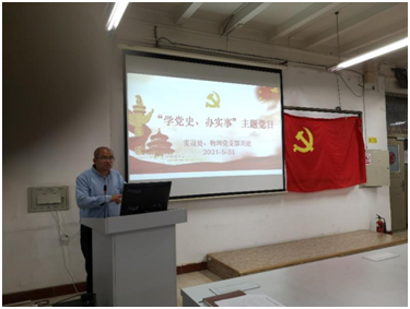 在中国共产党建党100周年之际,为推动党史学习教育往深里走、往心里走、往实里走,确保取得实实在在的成效,按照学校党史学习教育工作部署要求,2021年5月31日下午在教五楼409,数理学院物理党支部与实验室与设备管理处党支部共建开展党史学习活动。 首先,数理学院张自力副院长对物理学科的发展历史做了详细的介绍。通过一张张有着岁月沉淀的老照片,张老师结合学校发展的历史,梳理了物理学科从建立、变迁到现在逐步发展壮大的过程,也提到了在这些历史转变的过程中,实验室与设备管理处对物理实验中心建设起到了关键的作用。 随后,实验室与设备管理处梁勇处长对实验室与设备管理处部门的由来和发展历史,特别是名称的变化,职能的改变做了详细的介绍,同时也介绍了这些年来和物理党支部共建的历史。 接着,两支部党员共同学习了习近平《论中国共产党历史》四个章节,包括《讲好中国共产党的故事》、《革命精神是党和国家的宝贵财富》、《学好党史、新中国史、改革开放史、社会主义发展史》、《牢记初心使命,走好新时代长征路》。梁勇处长领读了部分章节内容,讲述了红军军需处长、全国道德模范龚全珍同志、焦裕禄同志等人的感人故事。 最后,支部党员就物理支部与实设处支部共建历史故事,实验室安全月活动,雄安校区的发展规划等话题开展了热烈讨论与交流。 通过此次活动,让党员们既学习了党史,还学习和了解自己部门的发展历史和两支部的传统友谊。参会党员一致表示,要继承和发扬这些优良的传统和奉献精神,以更加饱满的热情投入到工作中,为学科、学院、学校的发展贡献自己的力量。