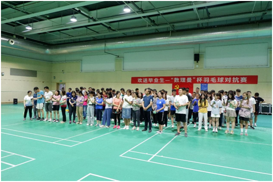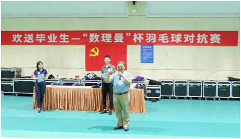 6月15日下午14:00,由数理学院物理党支部和硕士生第二党支部主办的“数理曼”杯羽毛球对抗赛在体育馆羽毛球馆成功举办。本次比赛旨在喜迎中国共产党建党100周年,激发学院师生爱党爱国的热情和团结奋进的精神,增进师生间的相互交流和了解,并为2021届毕业生送上学院的祝福。学院领导班子成员及各学科教研室的老师同学们参加了此次活动。