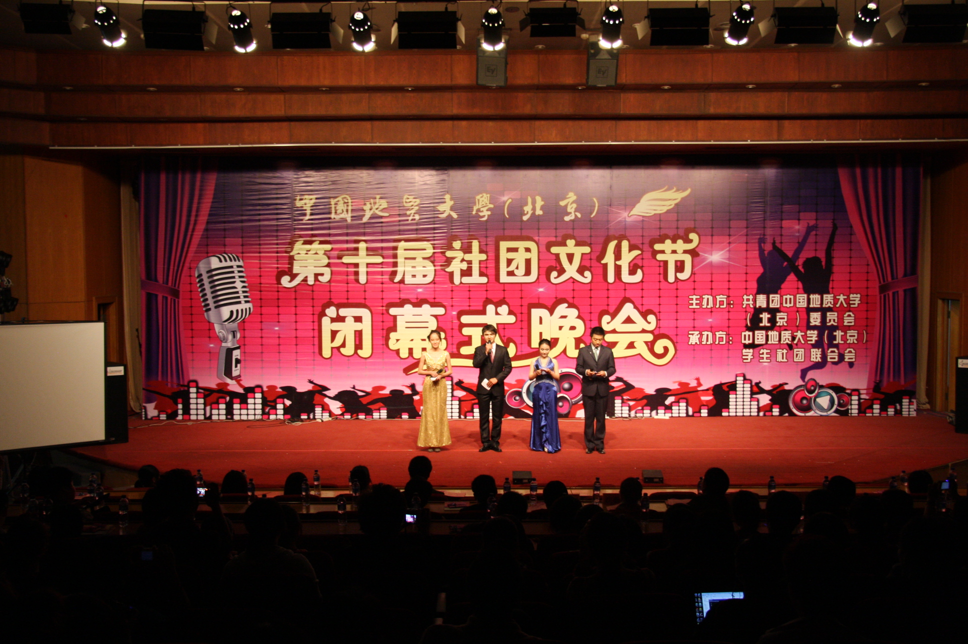 4月24日晚,我校第十届社团文化节闭幕晚会在学术交流中心二层举行。校党委副书记刘志方,学生工作部部长沙淑清,校团委专职副书记佟拓,学生社团联合会秘书长问尧,优秀社团指导老师褚宝增及各团总支书记出席闭幕晚会。另外,清华大学,北京大学,北京交通大学,中央民族大学等20多所兄弟高校社联社团代表也都应邀参加了此次晚会。