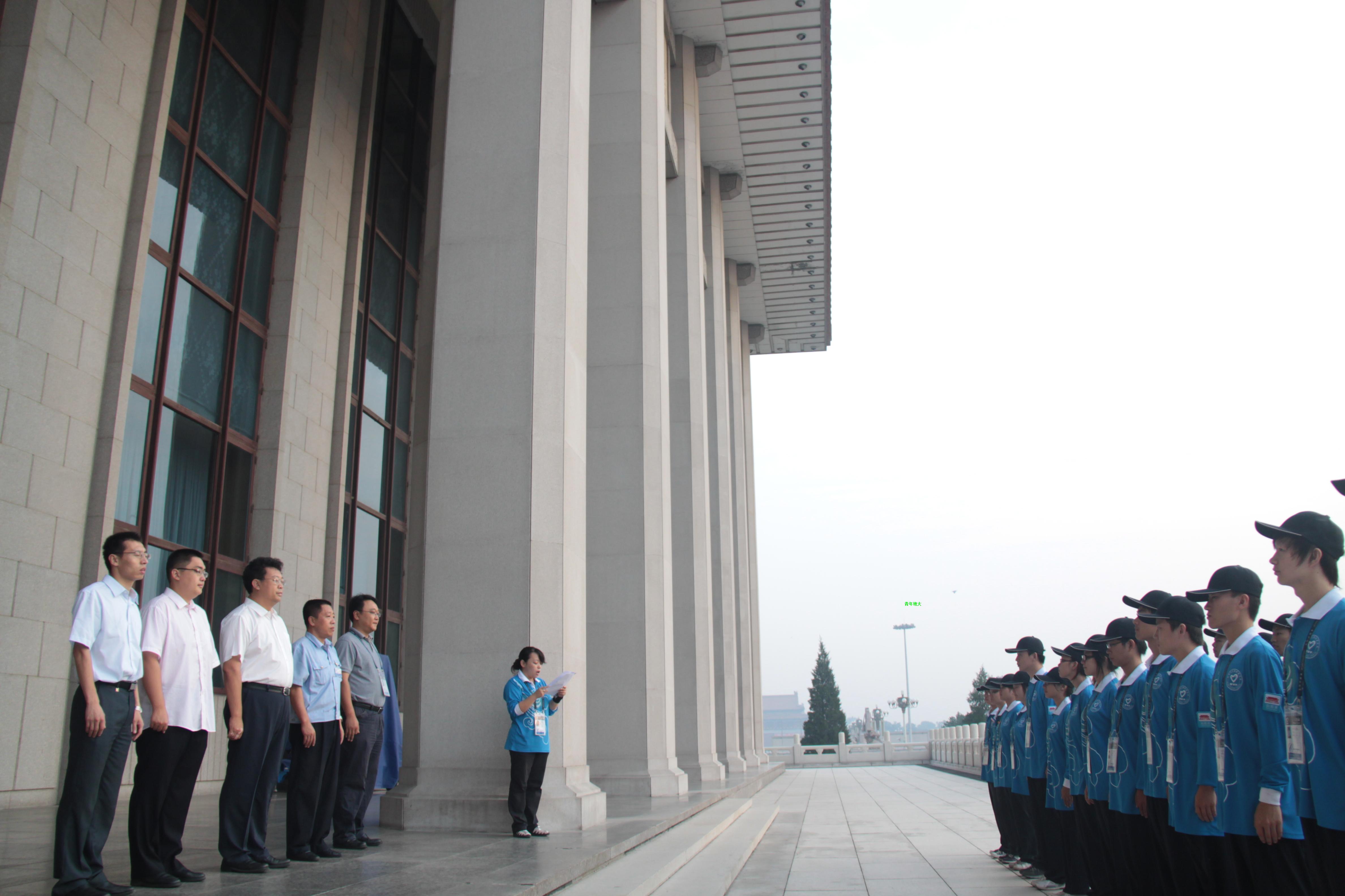 8月21日上午,由中国地质大学(北京)学生组成的第九批次毛主席纪念堂志愿总队与中央民族大学学生组成的第八批次志愿服务队顺利进行交接仪式,正式上岗。团市委机关党委书记郭新保、团市委大学部部长郑品石、毛主席纪念堂接待处处长晋卫东、北京市志愿服务指导中心副主任、毛主席纪念堂志愿项目负责人张楠、我校校团委专职副书记佟拓等出席仪式。
