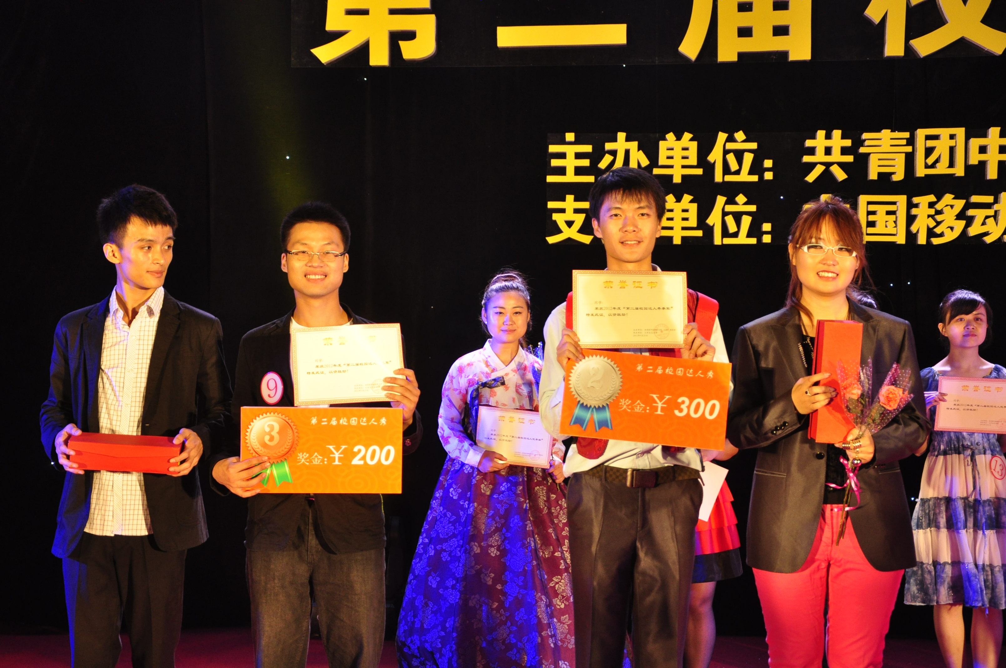 2012年9月23日晚七点,第二届校园达人秀决赛在夏日广场成功举办。艺术团指导老师张翃滔、何巧玲以及各院团总支书记、各校级学生组织主要负责人莅临现场。经过两轮激烈角逐,最终蔡汝聪等7人街舞组合为冠军,林海等8人表演组合为亚军,钟志达、刘倨任魔术组合为季军。