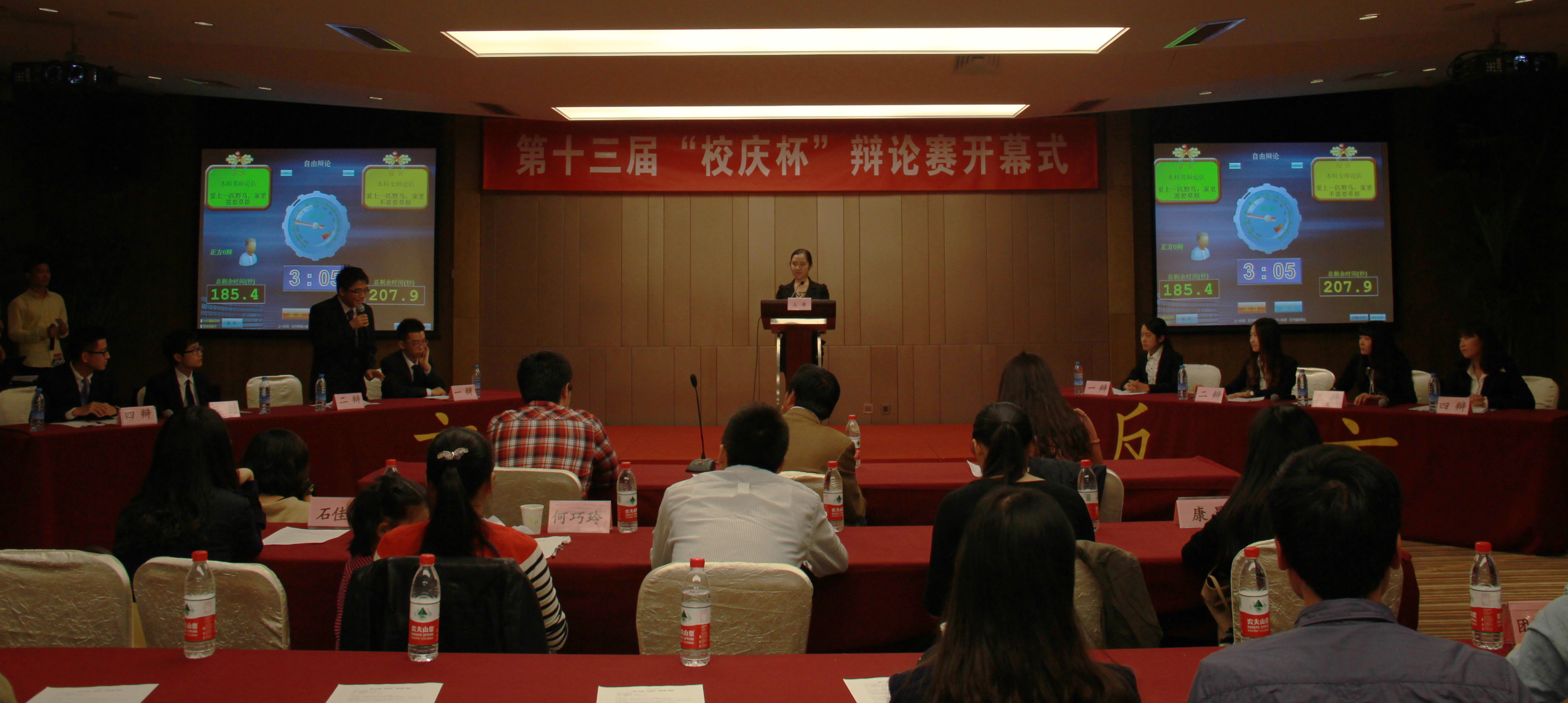 首先,闫旭副主席上台致辞,表达了自己对本次辩论赛顺利举办的美好祝愿。接下来,由我校优秀辩论选手分男队和女队展开辩论,大家带来了一场精彩的表演赛。表演赛的辩题为“爱上一匹野马,家里需不需草原”。男队持正方观点——需要,女队持反方观点。在辩论中,正方辩手风趣中尽显智慧,反方巾帼不让须眉,毫不示弱。在自由辩论环节,正方三辩——校辩论队队长卢迪一对三的精彩盘问更是引来了热烈的掌声。整场辩论赛各辩手言辞犀利,不乏幽默,令观众感受到了辩论的独特魅力。值得一提的是,由于这场辩论赛异常精彩,许多同学慕名前来观看,但座位早已坐满,只能站在会场边旁听,即便如此,仍不时有同学赶来。辩论结束后,褚宝增教授作为评委代表对这场比赛进行了点评。他赞扬了其中的可取之处,也指出了需要改进的地方。他还特别指出“诡辩”会给辩论带来亮点,希望大家借鉴。接下来,何巧玲老师和李瑞星老师为比赛揭杯,并宣布第十三届“校庆杯”辩论赛正式开幕。最后,抽签仪式举行,各学院辩论队队长上台抽取了比赛顺序。开幕式在热烈的掌声中圆满结束。