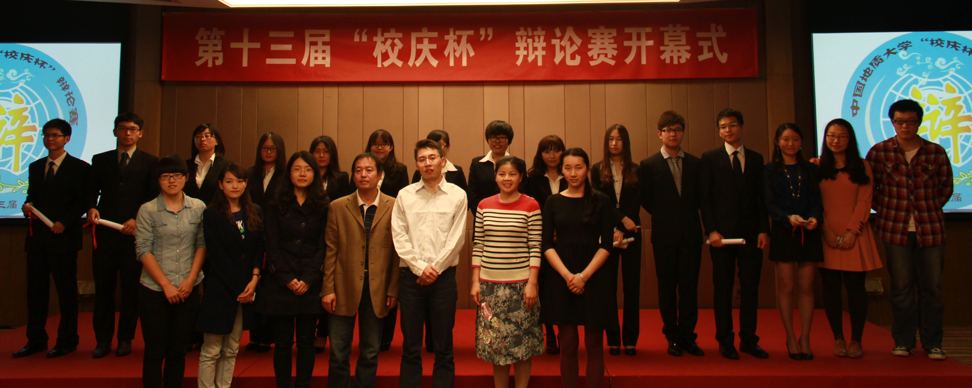 10月10日晚,第十三届“校庆杯”辩论赛开幕式于地大国际会议中心一层隆重举行。校团委专职副书记佟拓、校学生会秘书长何巧玲老师、校团委组织部部长李瑞星老师、校学生会副秘书长康晨、校学生会主席石佳玉、副主席闫旭、各学院团总支书记、副书记、校级学生组织负责人以及各学院学生分会主席出席了本次开幕式。我校数理学院教授褚宝增老师、北京科技大学辩论队队长白宇和北京语言大学辩论队队长刘倚稀担任了表演赛的评委。