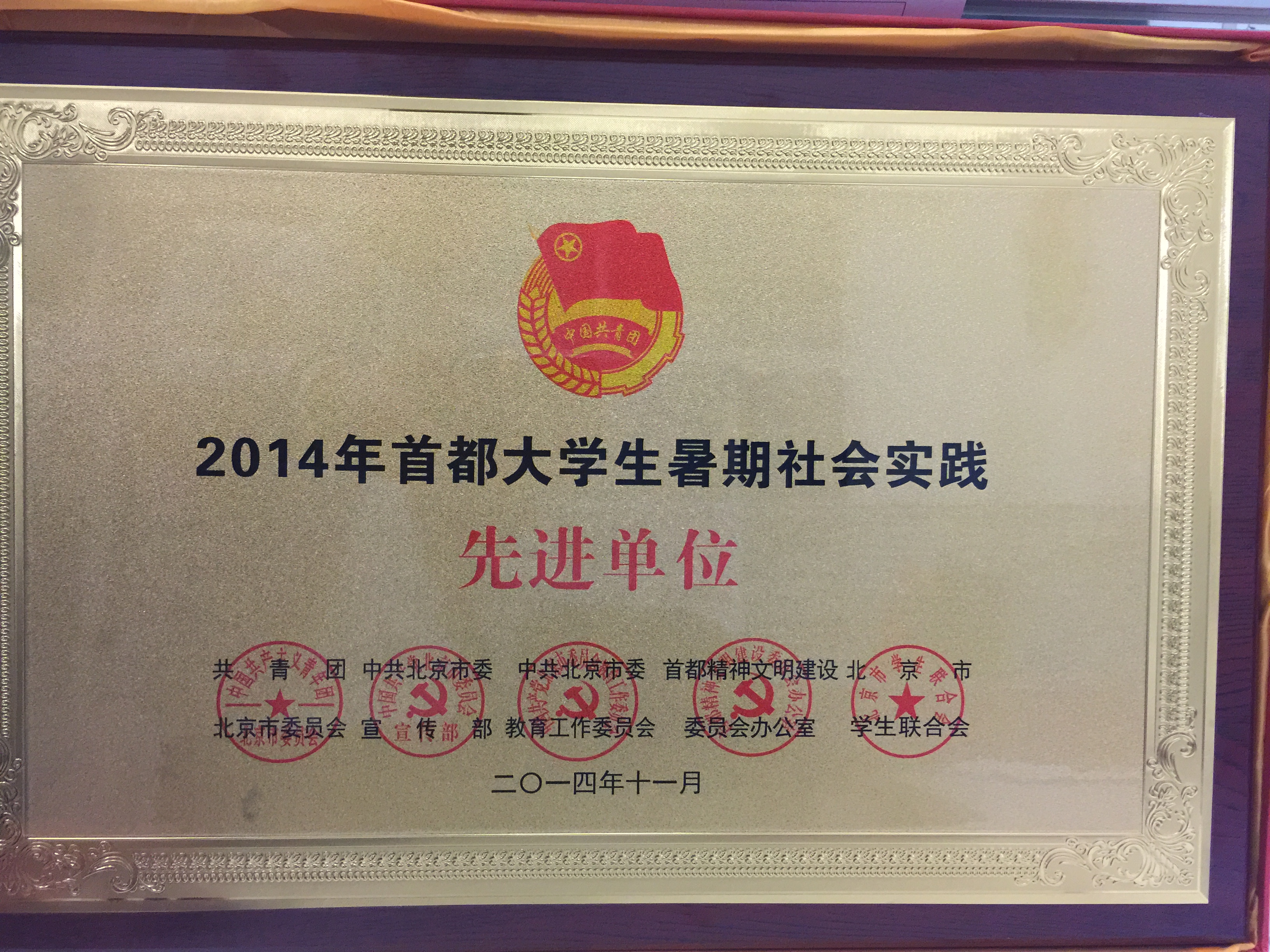 近日, 2014年首都大学生暑期社会实践先进单位、先进个人、优秀团队和优秀成果评选结果揭晓。我校被评为“2014年首都大学生暑期社会实践先进单位”,其中,10支社会实践团队获“2014年首都大学生暑期社会实践优秀团队” 称号。20项社会实践成果获“2014年首都大学生暑期社会实践优秀成果”,5人获“2014年首都大学生暑期社会实践先进工作者”称号,5人获“2014年首都大学生暑期社会实践先进个人”称号。