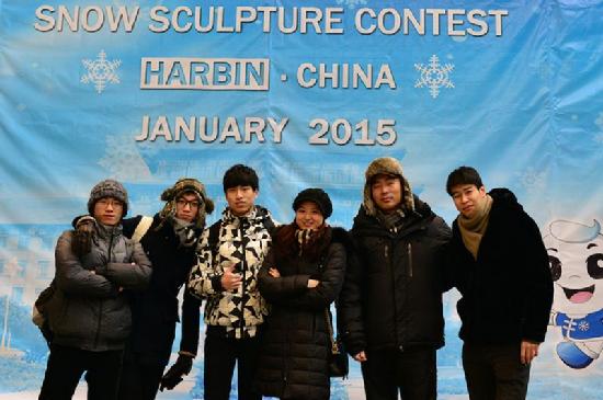 1月7日,以“雪燃青春,逐梦未来”为主题的2015年第七届国际大学生雪雕大赛在哈尔滨工程大学落下帷幕。我校代表队在校团委问尧老师的带领下,由珠宝学院何魁老师以及李春来,李名扬,董文迪,苏天浩4名学生组成的创作团队一行六人首次前往哈尔滨参加比赛。经过4天日夜奋战,我校创作的作品《友谊使者》入围决赛,并最终荣获大赛三等奖和“观众最喜爱雪雕作品”两个奖项。