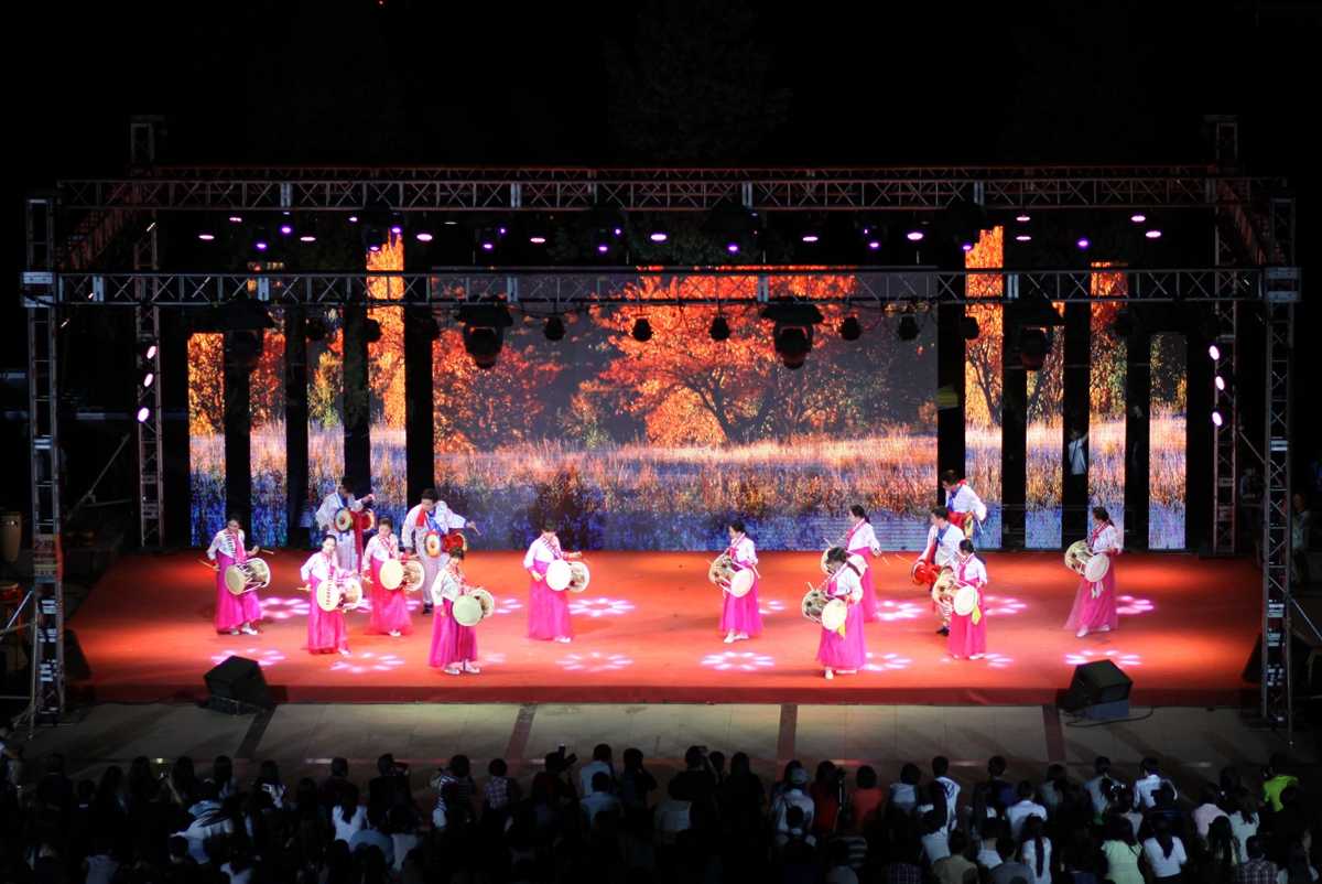 晚会在气势恢宏的《万马奔腾》中拉开帷幕。整齐划一的《龙腾虎跃》,生动形象的《牛斗虎》,中华民族打击乐节目大放光彩;朝鲜族长鼓舞《阿里郎》《新长鼓》优雅唯美,如梦如幻;《中华扇鼓》将传统打击乐与中华武术相结合,刚柔相济,行云流水,把晚会推向高潮;《Everybody knows I love you》《See you again》英文歌曲与非洲手鼓、beatbox(声势打击乐)结合的形式令人耳目一新;《和合鼓语》以日本太鼓表演形式为创作素材,充满异域风情。部分打击乐团已代毕业老团员从各地赶来,现场发表感言,与大家分享在打击乐团经历的青葱岁月同时表达了对母校深深的祝福,真挚的情感打动在场所有人。最后,晚会在几代团员共同演绎的经典鼓乐《中国龙》热烈的气愤中圆满落幕。