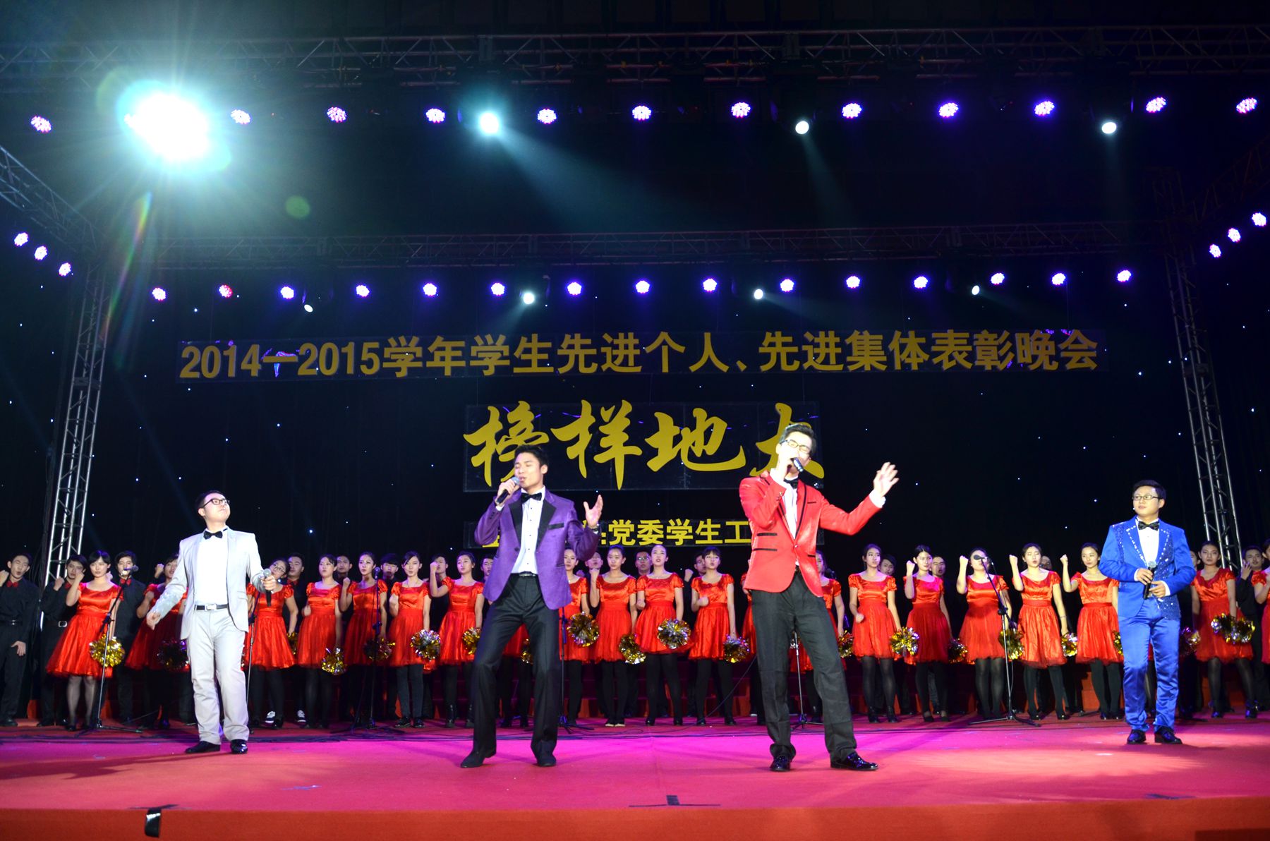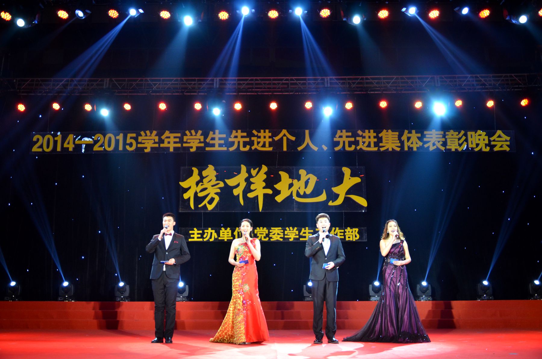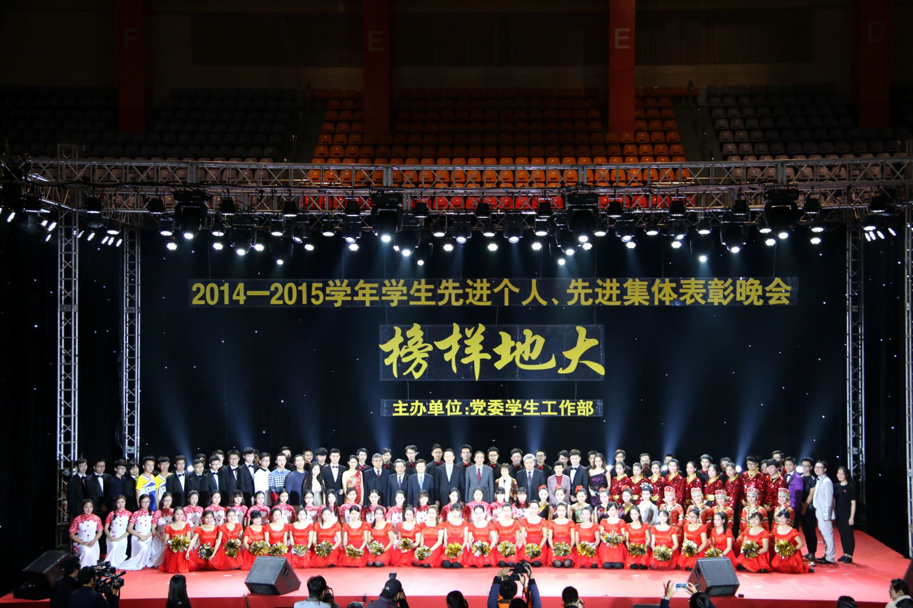 12月21日晚,由党委学生工作部主办的“榜样地大”——2014-2015学年学生先进个人、先进集体表彰晚会在体育馆成功举行。全体在家校领导及相关部门、各学院负责人出席并为获奖学生颁奖。辅导员及学生代表约1500余人出席了本次表彰晚会。