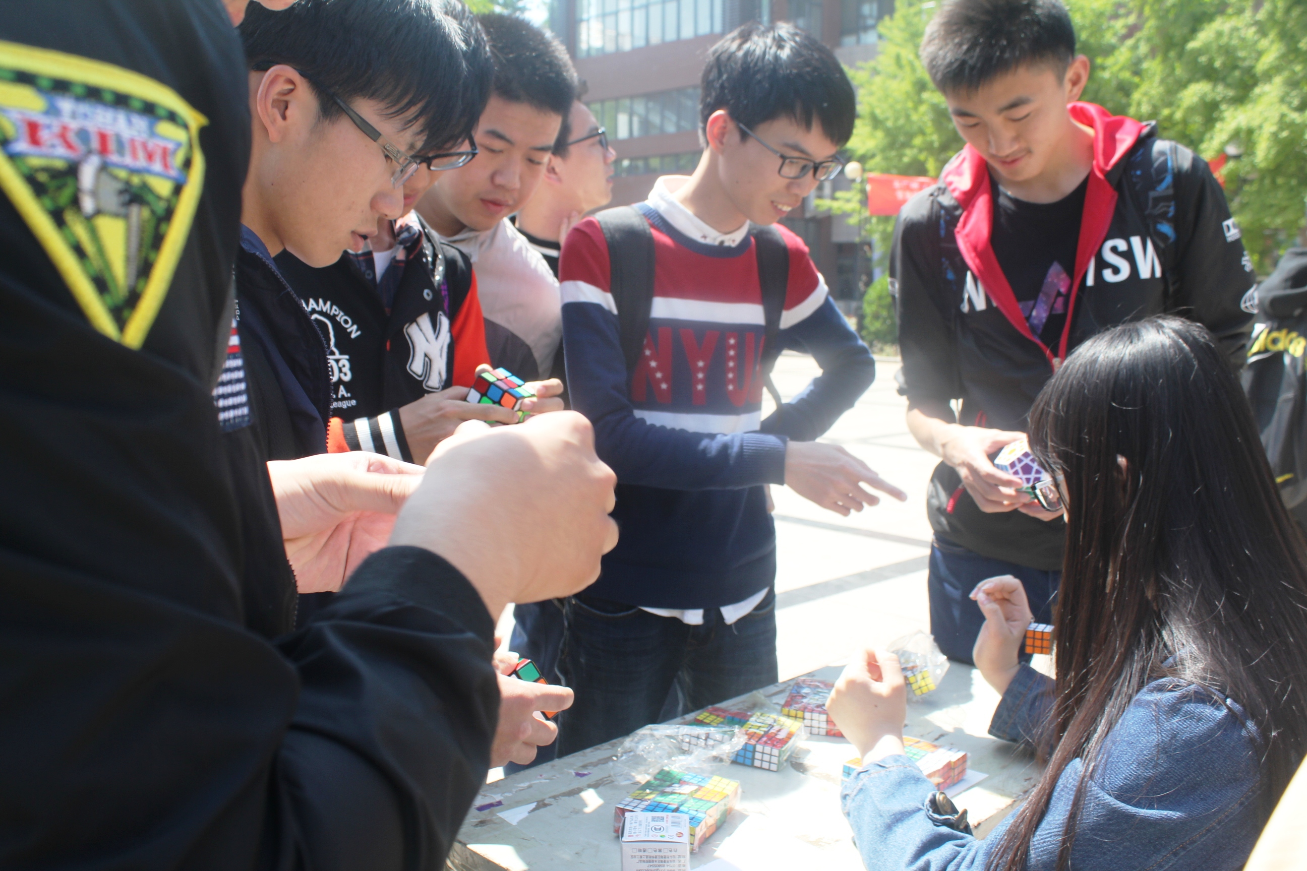 2016年4月20日中午12时,“旋彩心”第一届魔方比赛决赛在夏日广场成功举办。本次活动由我校滴嗒魔方协会协办。