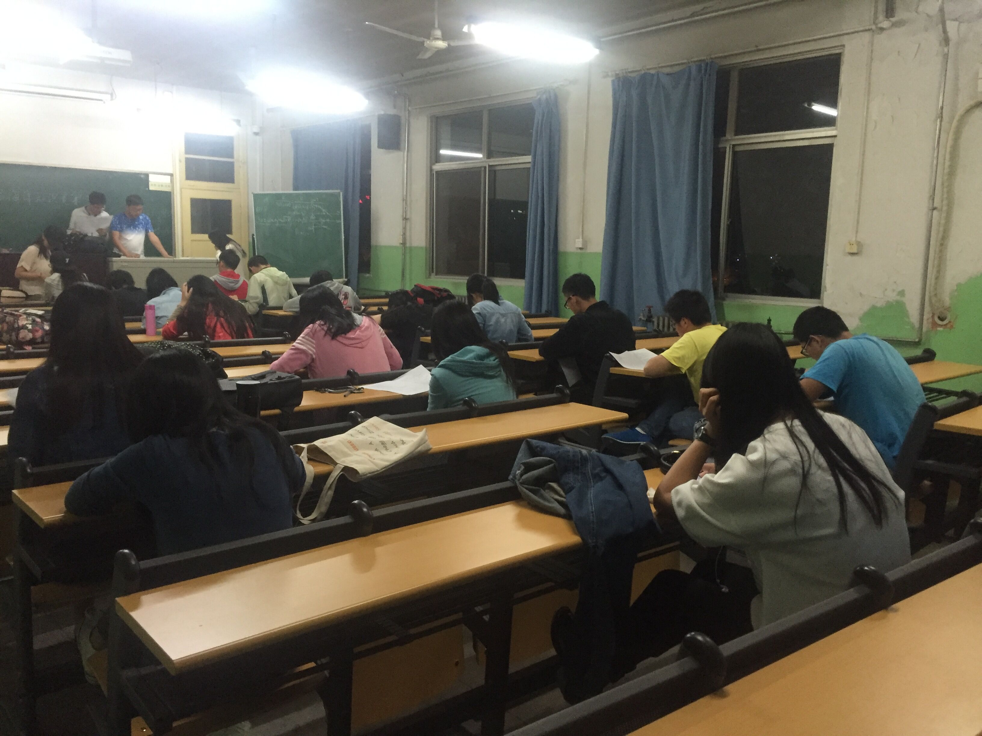 笔试于4月23日晚7:20在教一楼410举行,时间为一个小时。笔试当晚,由海洋学院团总支副书记潘涛作为监考人员。考试期间,每位参赛同学都全神贯注,或冥思,或疾书。虽然试卷题目不多,但同学们都很认真,大家都尽着最大的努力想要交上一份令自己满意的答卷。