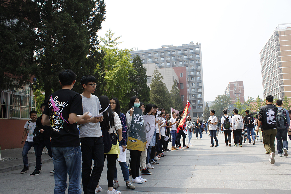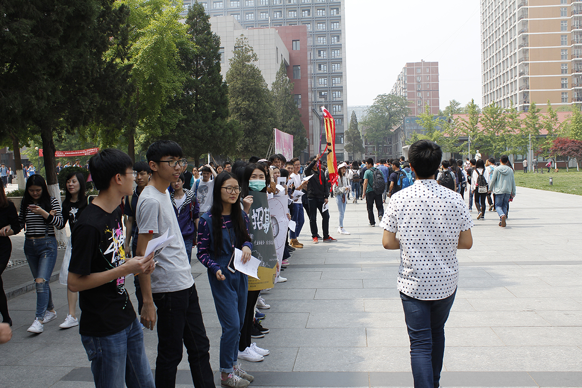 4月25日与26日中午,我校校学生会干事们在夏日广场进行了2016届毕业生晚会节目的现场招募。