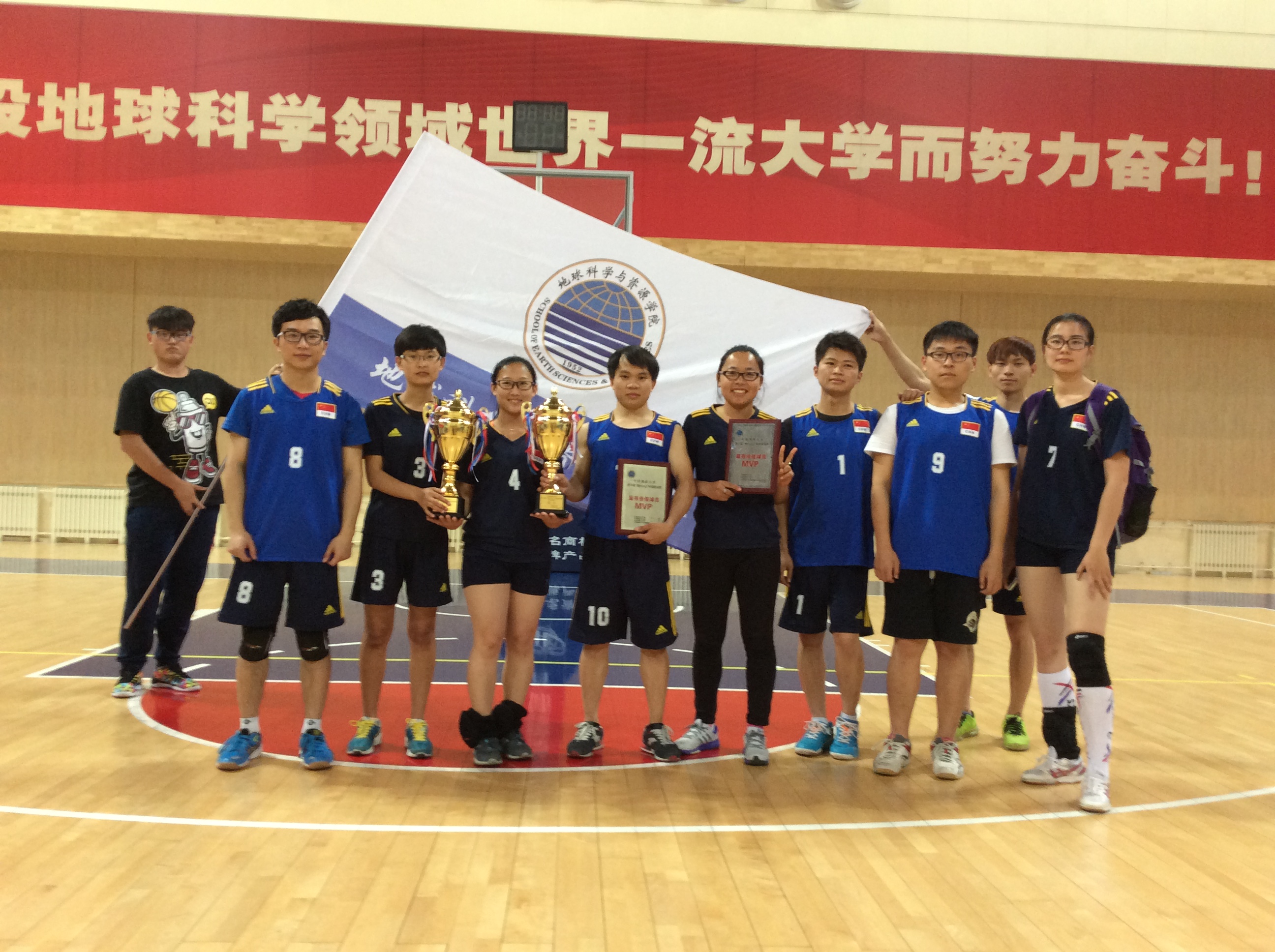 5月3日,由校团委体育课部和校学生会主办、地球物理与信息技术学院学生分会组织承办的地“young”杯排球联赛男子组和女子组的决赛,于体育馆一层篮球场成功举办。地学院男子排球队和女子排球队,一路过关斩将,闯进决赛,并通过奋力拼搏和不懈努力,最终均以2:0的良好战绩夺得男子排球和女子排球的双料冠军。男子排球队队员夏波、女子排球队队员娜米儿分别获得男排、女排的“最有价值球员”(MVP)奖。