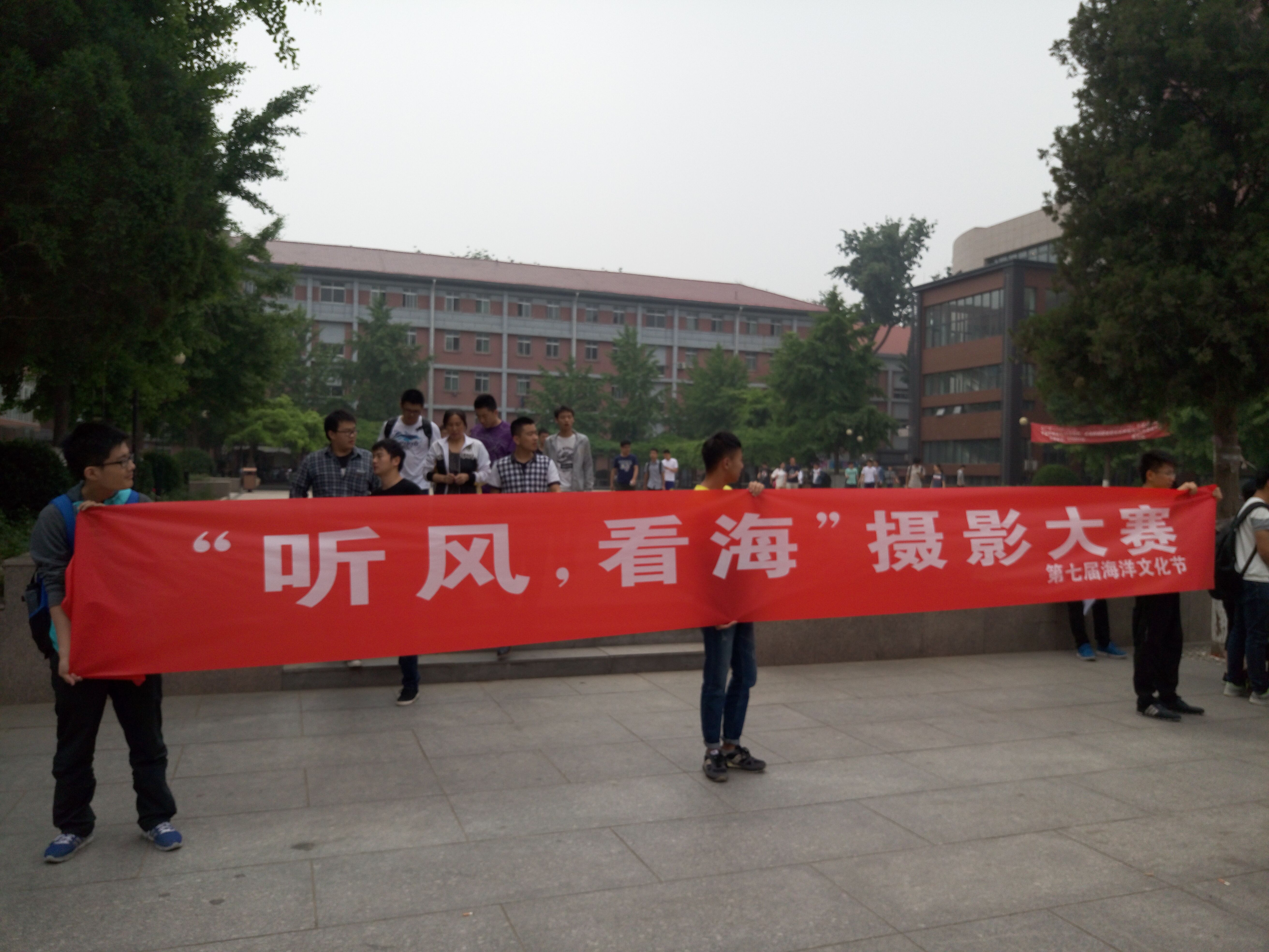 随着第七届海洋文化节之“听风,看海”摄影大赛的即将举办,在2016年5月11日中午,海洋学院学生分会的同学们在夏日广场进行了此次活动的宣传。