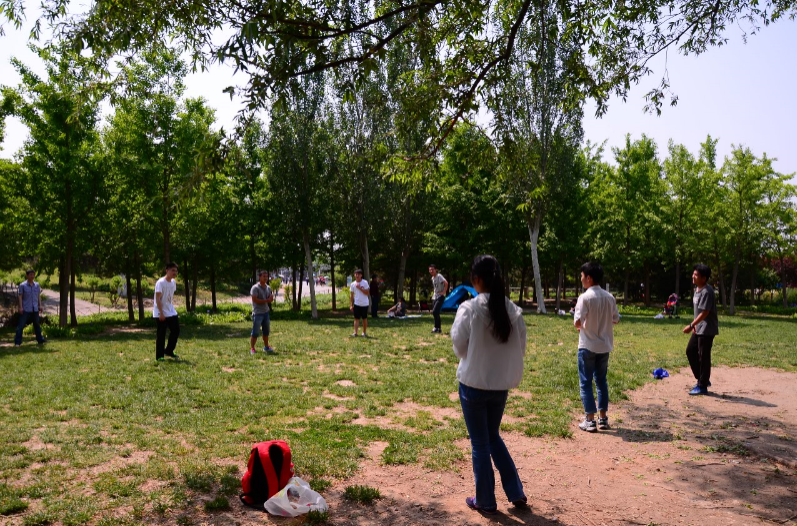 上午8点,我们班准时在中北门集合出发,刚到奥森公园,有的同学立即拿出了早已准备好的装备,开始摇动大绳,打起了沙包,其余的同学自由分组,开始了激动人心的跳大绳和打沙包的比赛,现场气氛紧张而不失愉悦。 在温暖的阳光下,同学们跳动的身影、笑声和舒适的光线融为一体,在青春的书页上写下独特的一节篇章。运动的青春最美丽,比赛结束后同学们又聚在一起玩起了纸牌游戏。用餐时间,大家围绕在一起,都拿出了自己精心准备的午餐,在用丰富的食物填饱自己肚子的同时,相互发表了各自的感想和快乐。