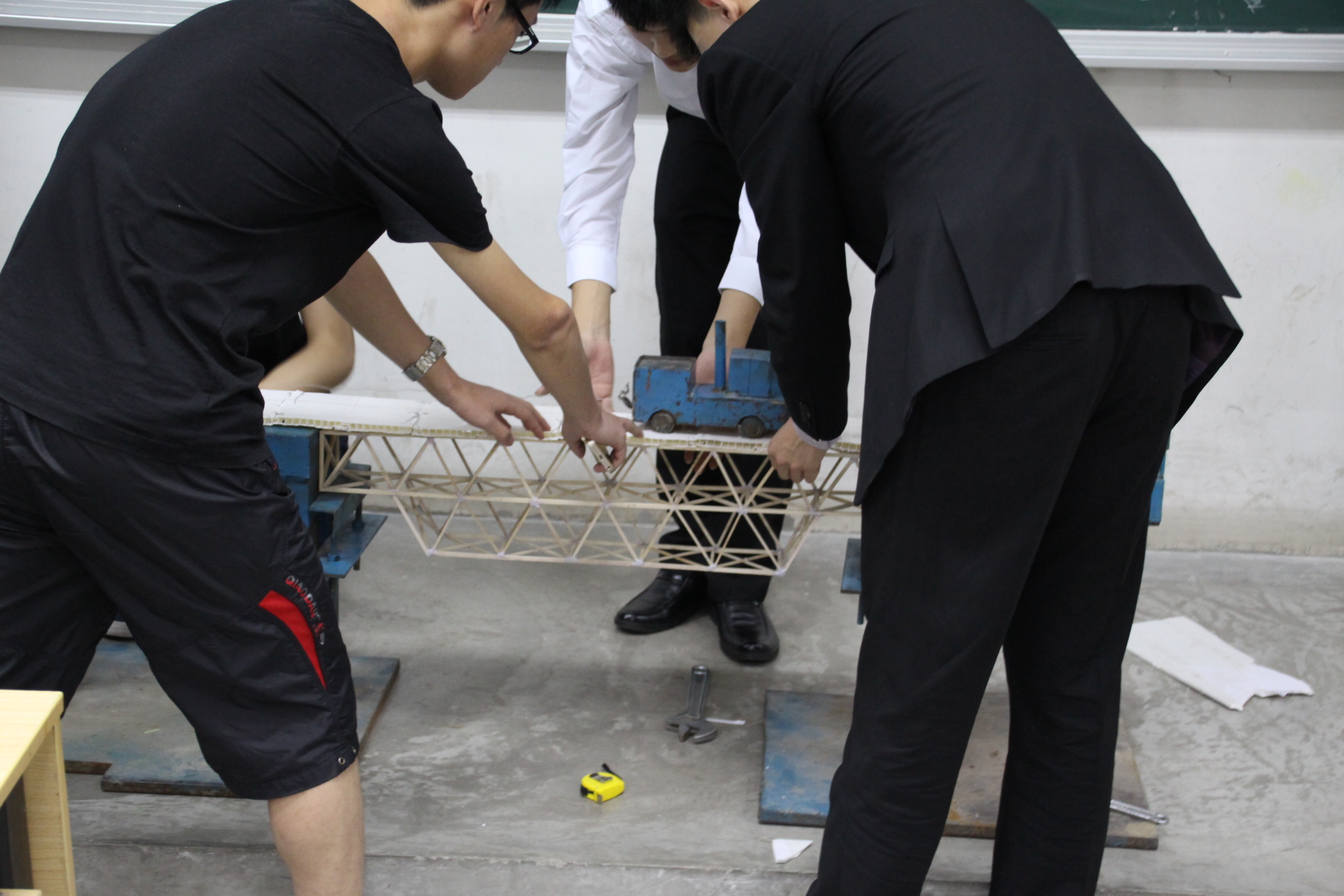 此次大赛的题目为承受运动载荷的桥梁结构模型设计。比赛规定模型制作材料为桐木、白乳胶,不允许使用任何其它材料。进入决赛的12组选手经过一个月的精心准备,在培训老师的帮助下带来了各自精心制作的桥梁模型,决赛要求作品承载重量15公斤小车在铺好的桥面上通过,并不损坏桥梁结构。经过PPT答辩,评委审定,桥梁无损加载通过等三项进行综合评分,最终决出排名。最终获得a组决赛前5名依次是第一名雄鹰支队,第二名势不可挡队,第三名有源泽队,第四名选择题全队,第五名压不断队。