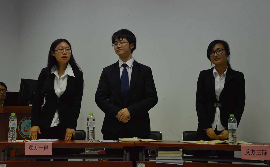 5月21日晚8:30,第四届正青春辩论赛之外国语学院对阵信息工程学院于教三楼307顺利举行。此场比赛特邀中国农业大学校辩论队12级队长符绍鹏、北京林业大学校辩论队前队长林孝煜、中国矿业大学12级队长孙小杨担任评委。最终辩论赛以正方外院战胜反方信工告终。