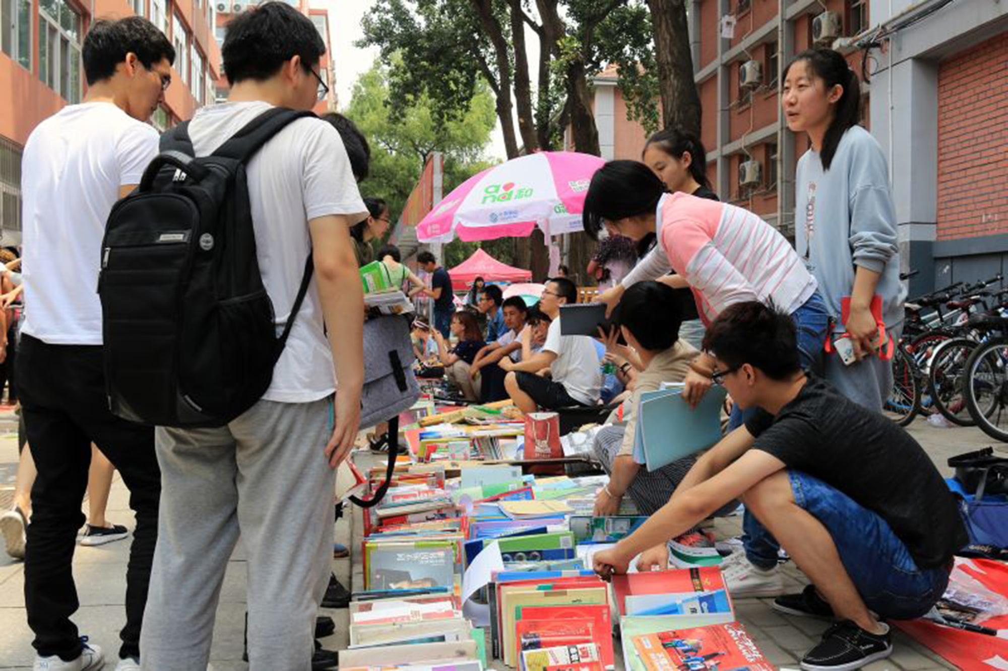 虽然骄阳似火,但不论是摆摊的学长学姐还是购物的学弟学妹的热情都丝毫不减。许多自主创业的同学结合专业特色摆出了自制的首饰,玉坠,原石等商品,但大部分摊主售卖的依旧是大学四年中的课本,课外书,生活用品等。同学们纷纷利用这次跳蚤市场挑选自己心仪的书籍和其他小物件,既方便了毕业生处理自己难以带走的物品,又给其他年级的同学提供了物美价廉的商品。