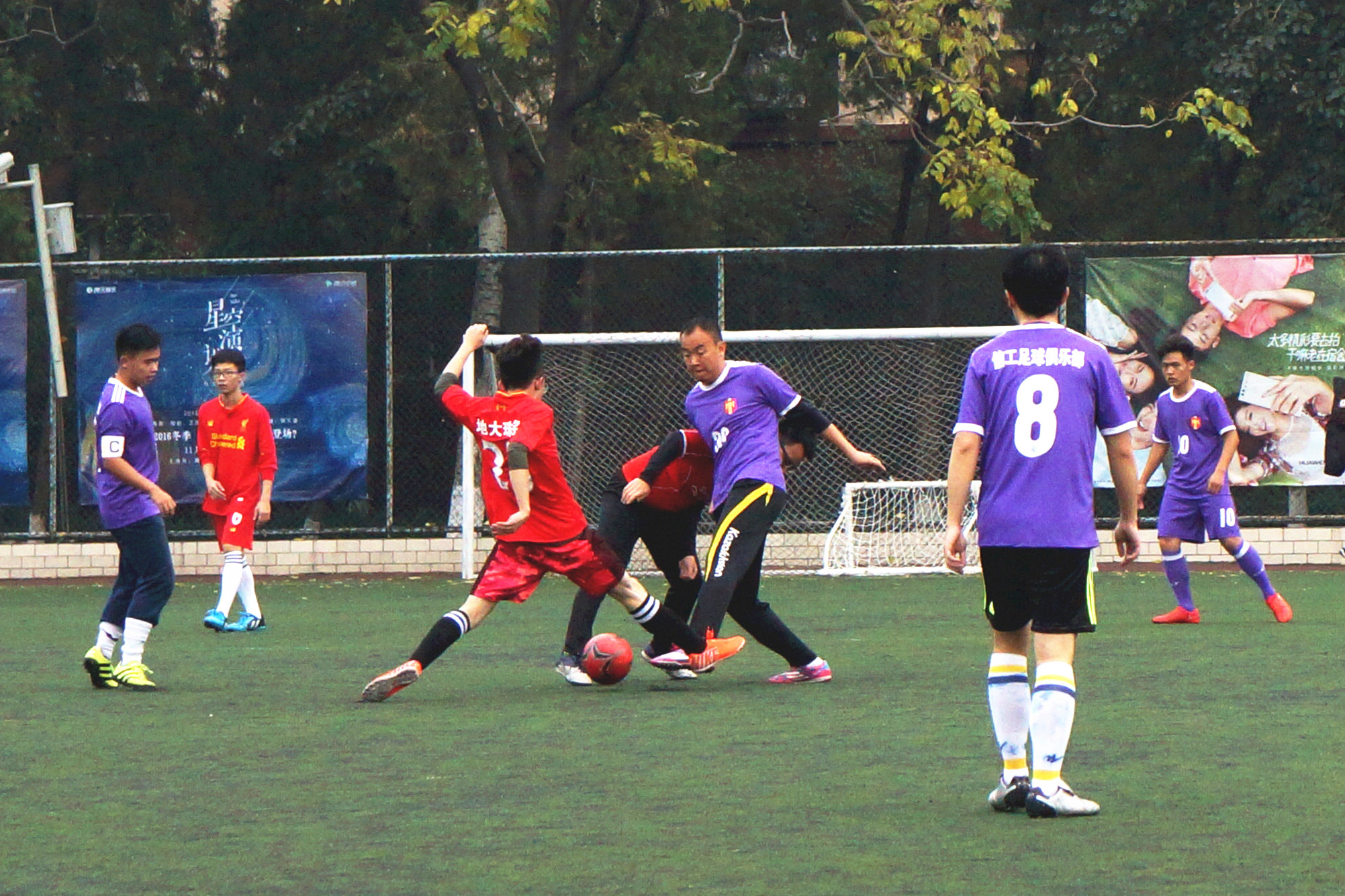 经过几分钟的休息好调整,下半场比赛于13时06分开始,比赛双方易位再战。下半场一开始,信工队就呈现出猛烈的攻势,将珠宝队压制在半场。下半城7分钟,16号刘志峰又一次攻破对方球门。将比分变为3;0。短短三分钟后,28号李鹏梅开二度,绕开防守后打进一球。珠宝队急需调整心态,组织防守。下半城14分钟,信工队12号孙浩桐抓住时机,成功打进一球。信工队越战越勇,珠宝队也没有气馁,继续调整状态,确保了剩下的比赛没有失球。打出了自己的风采。13时50分,主裁判吹响了比赛结束的哨声,精彩的比赛结束。