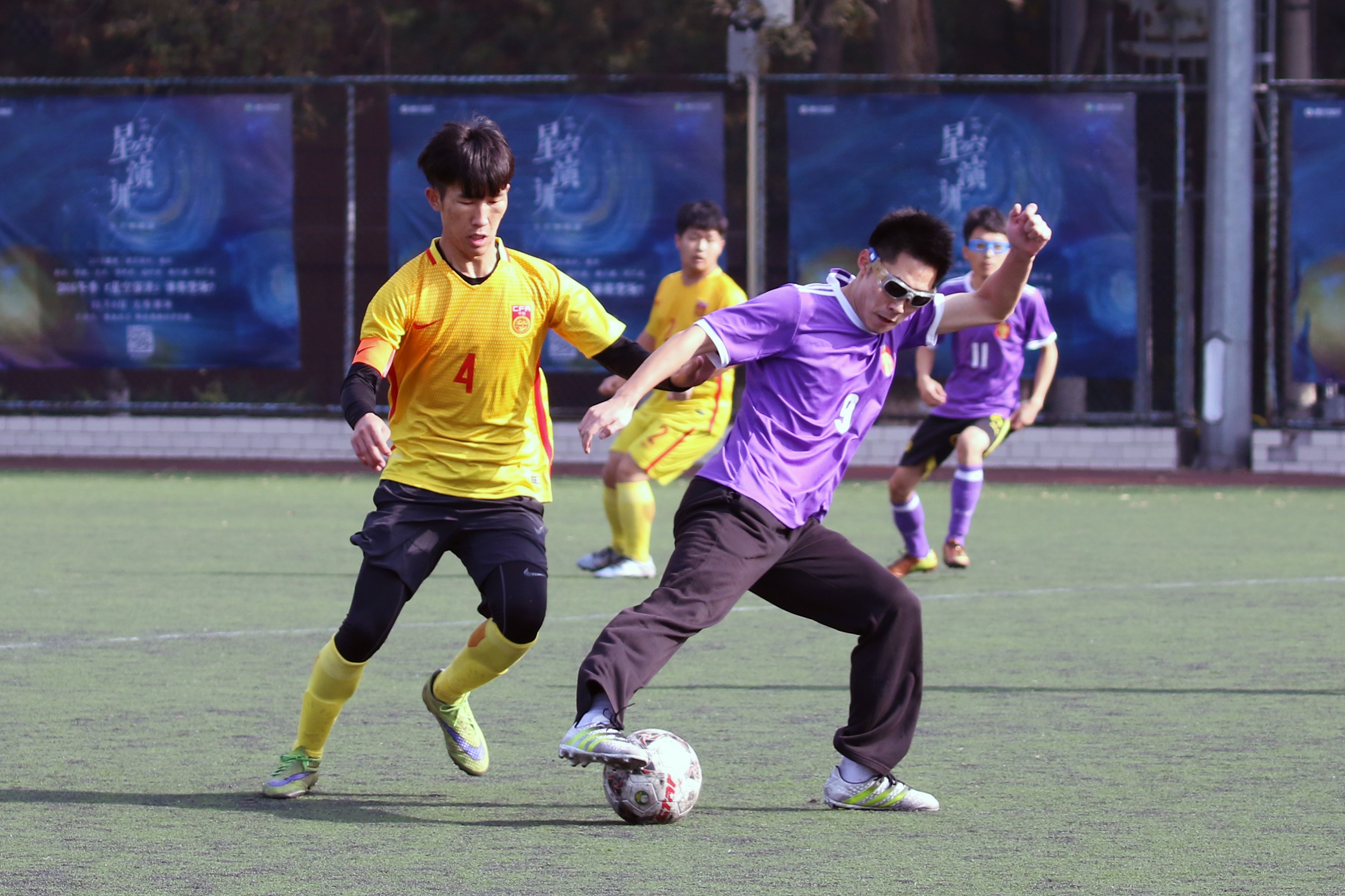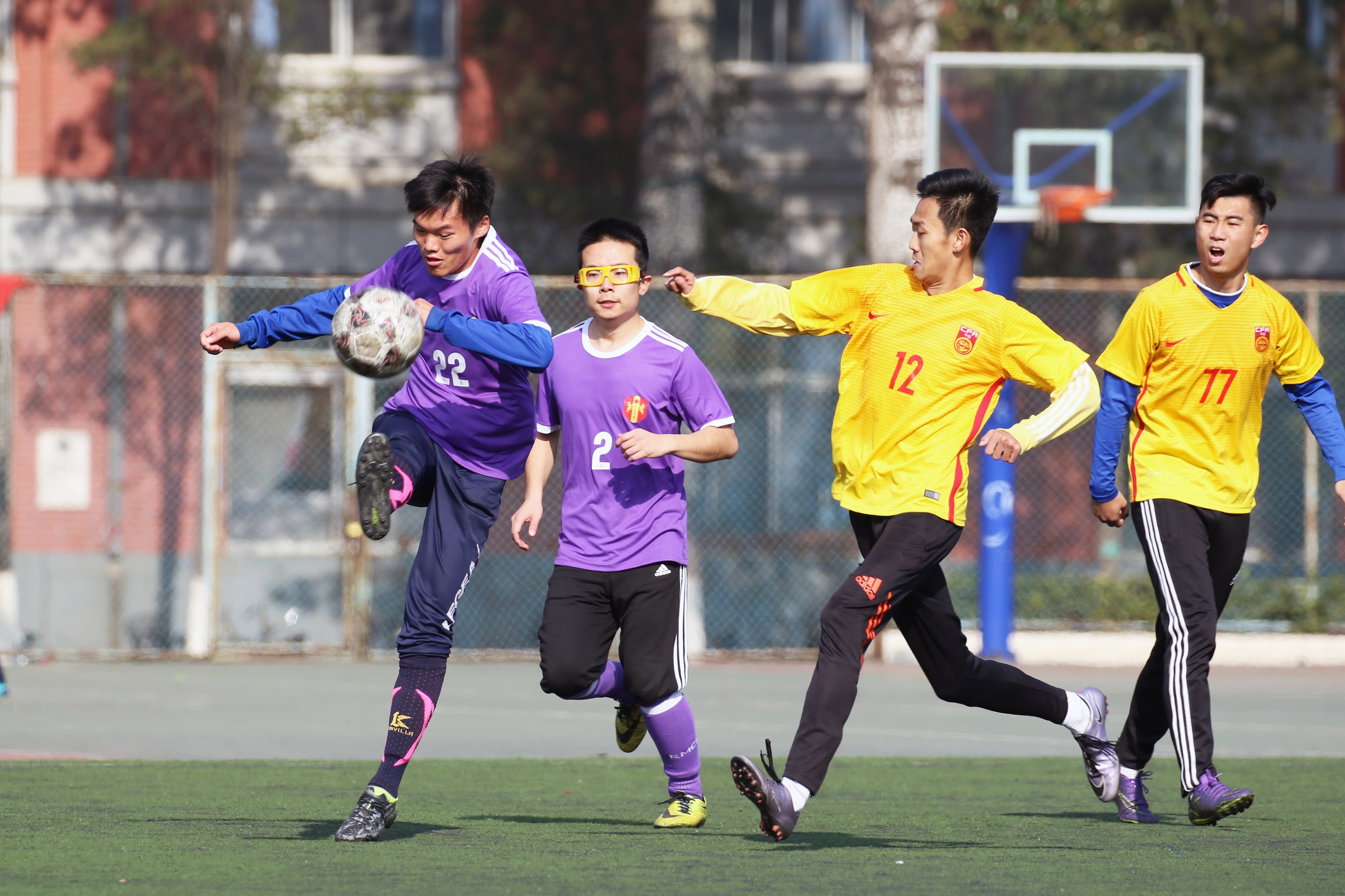 北京时间11月12日,地大东足球场迎来了本届“足协杯”的三甲(4进3)决定赛,对阵双方是身着黄球衣的能源队和身着紫色球衣的信工队。由于是关键性的比赛,双方都投入了极大的热情和斗志。最终比分却很悬殊,能源以7:1的差距结束了比赛,获得了争夺三强的资格。